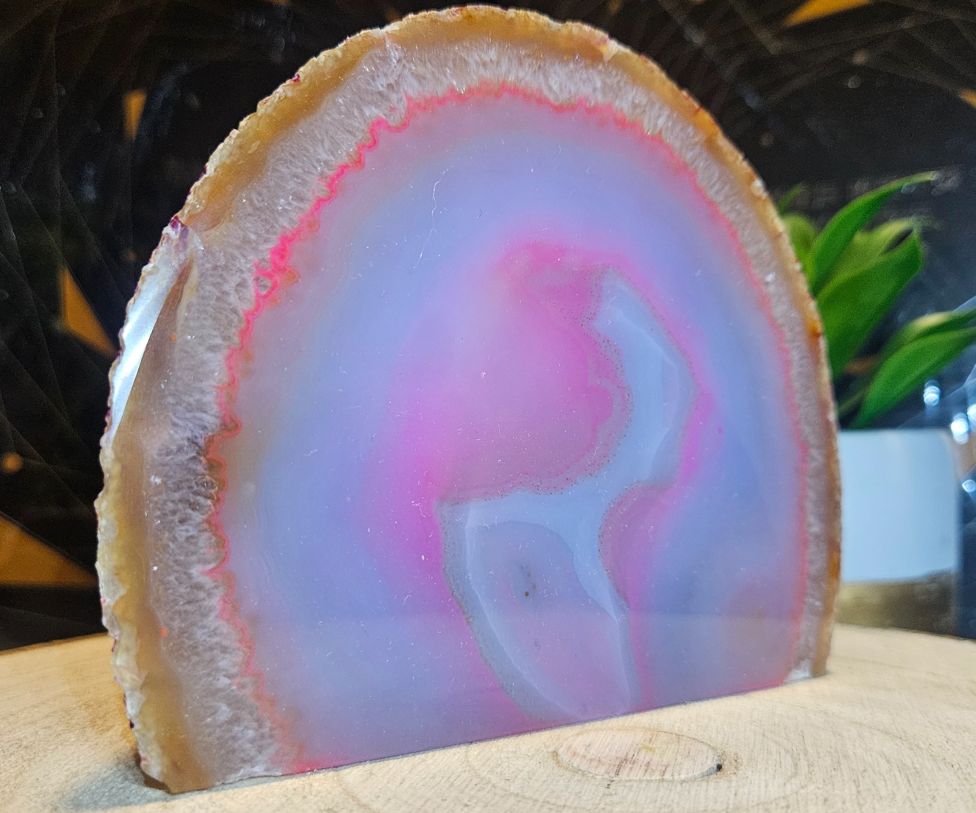 Leštené achátové polovičky prírodných farieb s rovnou základňou,s prifarbením.Vhodné ako ťažítka, alebo dekorácia do interiéru.