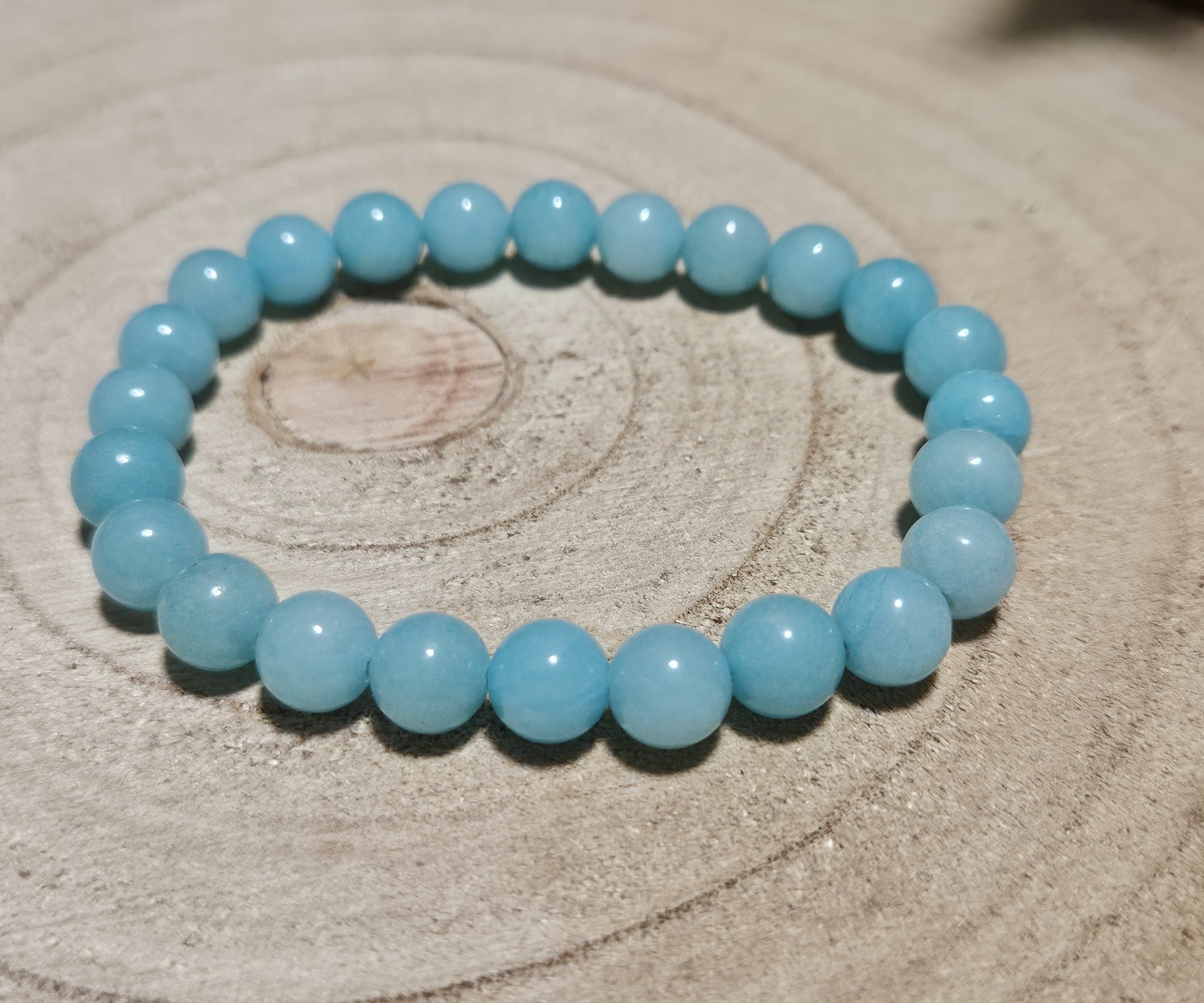Tento čistý a elegantný amazonitový náramok z guľôčok je symbolom vnútorného pokoja a harmónie. S 8 mm, dokonale leštenými, okrúhlymi amazonitovými guľôčkami, ktorých jemná, modrozelená farba pôsobí upokojujúco. Náramok je navlečený na elastickú šnúru, ktorá zaisťuje pohodlné nosenie na zápästí s obvodom 16-18 cm. Vďaka svojmu nadčasovému tvaru je ideálnym doplnkom na každodenné nosenie aj na špeciálne príležitosti.