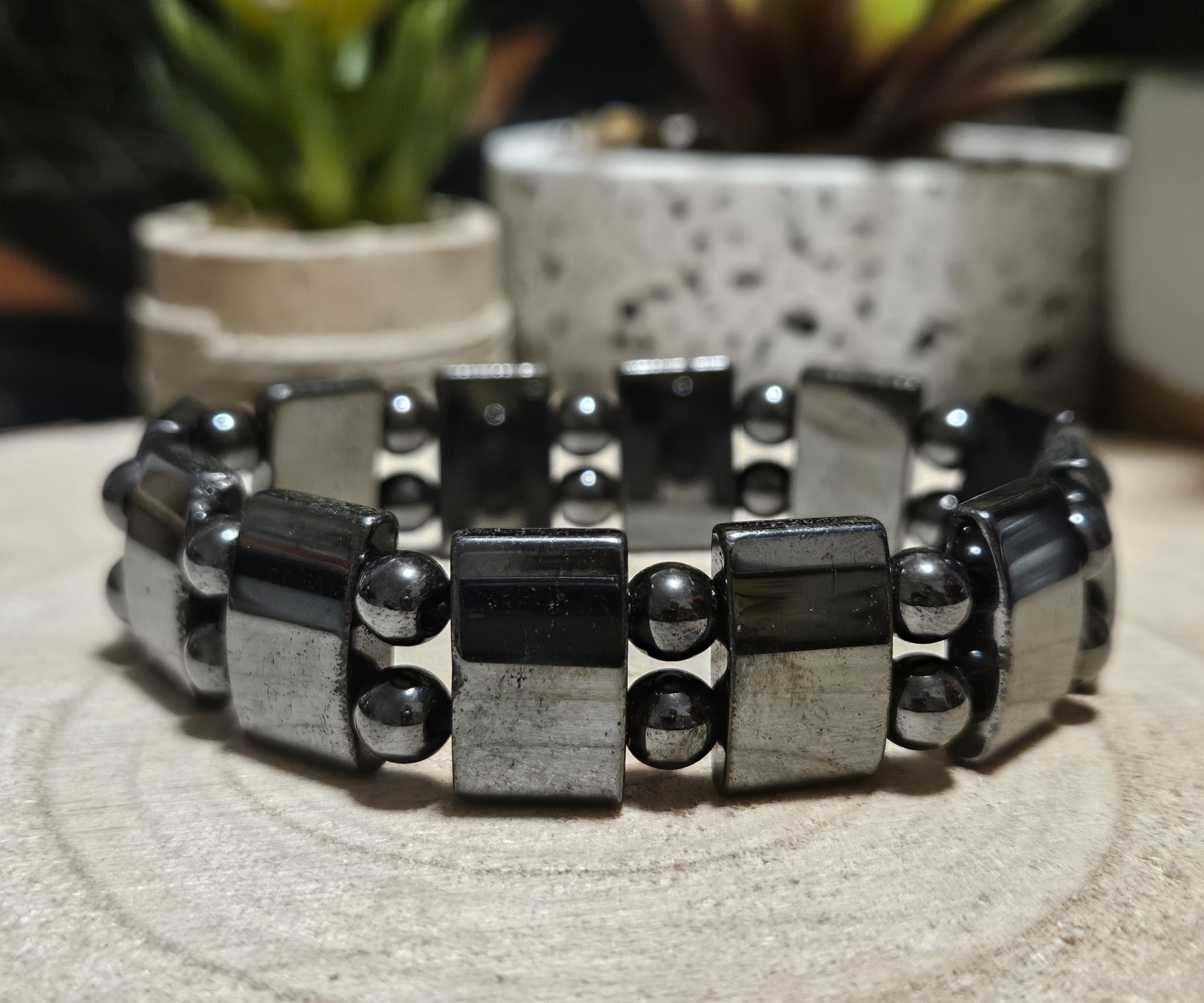 Korálky sú navlečené na elastickej gumičke, čo umožňuje stabilné, pohodlné každodenné nosenie, zatiaľ čo magnetická vlastnosť ďalej zvyšuje funkčnú hodnotu náramku.