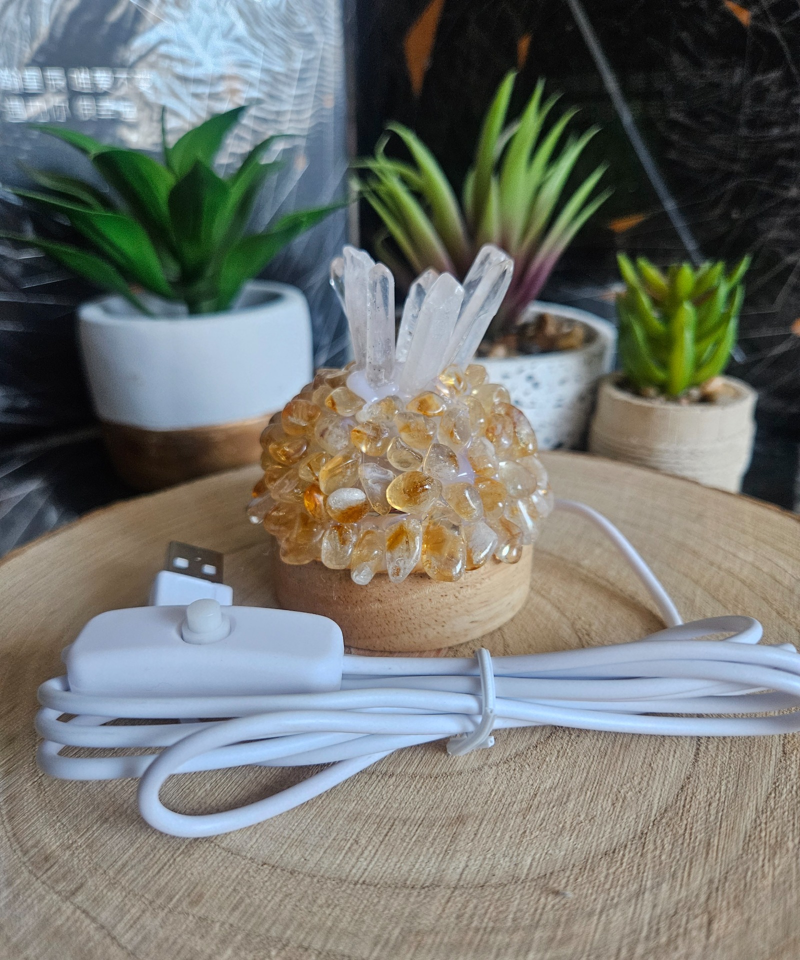 Táto krásna, ručne vyrobená minerálna lampa je vyrobená z prírodného Citrínu, minerálu z horského krištáľu, ktorý vyžaruje harmóniu a pozitívnu energiu. Jeho špeciálny vzhľad a duchovný význam z neho robia perfektnú voľbu pre dekoráciu domácnosti alebo darček.