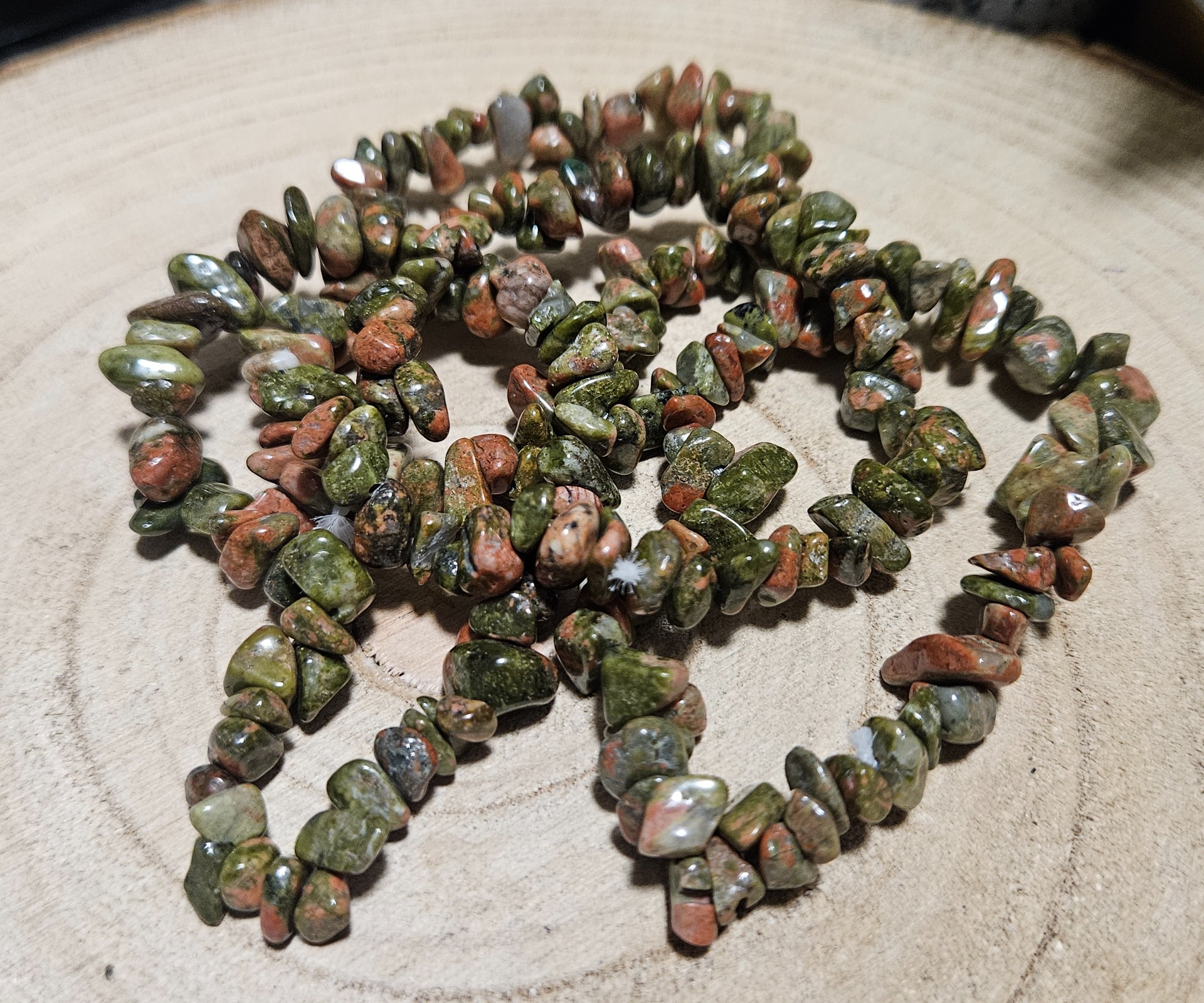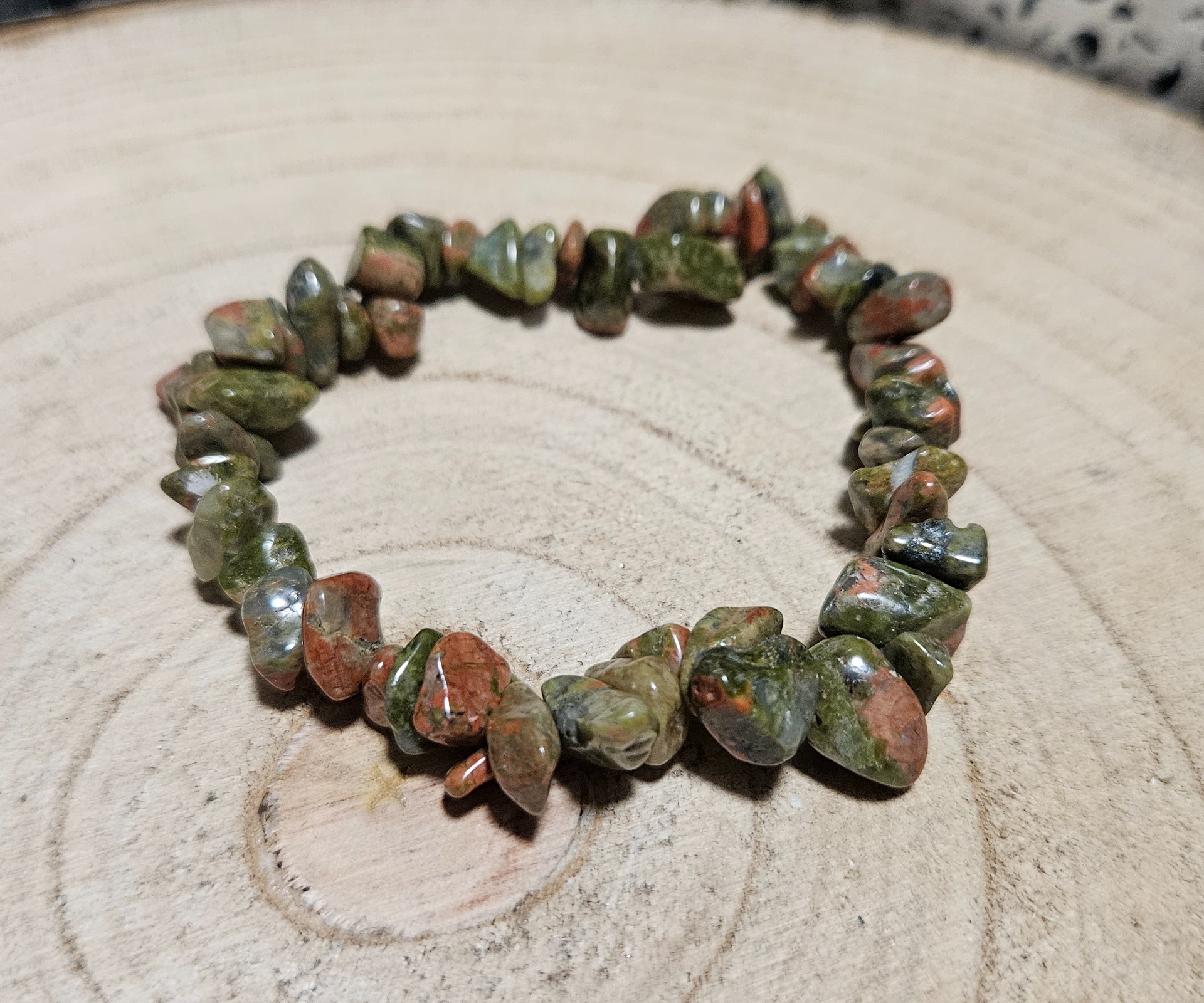 Tento Unakitový štiepkový náramok je krásna, uzemňujúca energetická bomba pre tvoje zápästie! Nepravidelné kúsky zelenej (rast, hojnosť) a lososovo-ružovej (láska, liečenie) ti pomôžu pri vytváraní vnútornej rovnováhy. Unakit ťa povzbudzuje, aby si sa zbavila minulých sklamaní a pozerala do budúcnosti s optimizmom. Je ideálnym spoločníkom, ak potrebuješ emocionálnu podporu a pozitívne zmeny vo svojom živote.