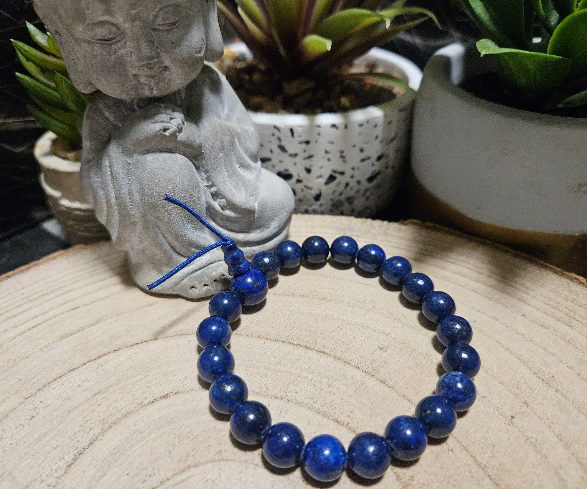 Tento minerál je úzko spätý s krčnou čakrou a čakrou tretieho oka. Mystika náramku spočíva v jeho schopnosti prepojiť logické myslenie s intuitívnym vnímaním, čo vedie k stavu osvietenia a vnútornej slobody. Na fyzickej úrovni sa verí, že lapis lazuli pomáha pri znižovaní krvného tlaku, zmierňuje zápaly v oblasti hrdla a podporuje imunitný systém tým, že harmonizuje celkový energetický tok v tele.