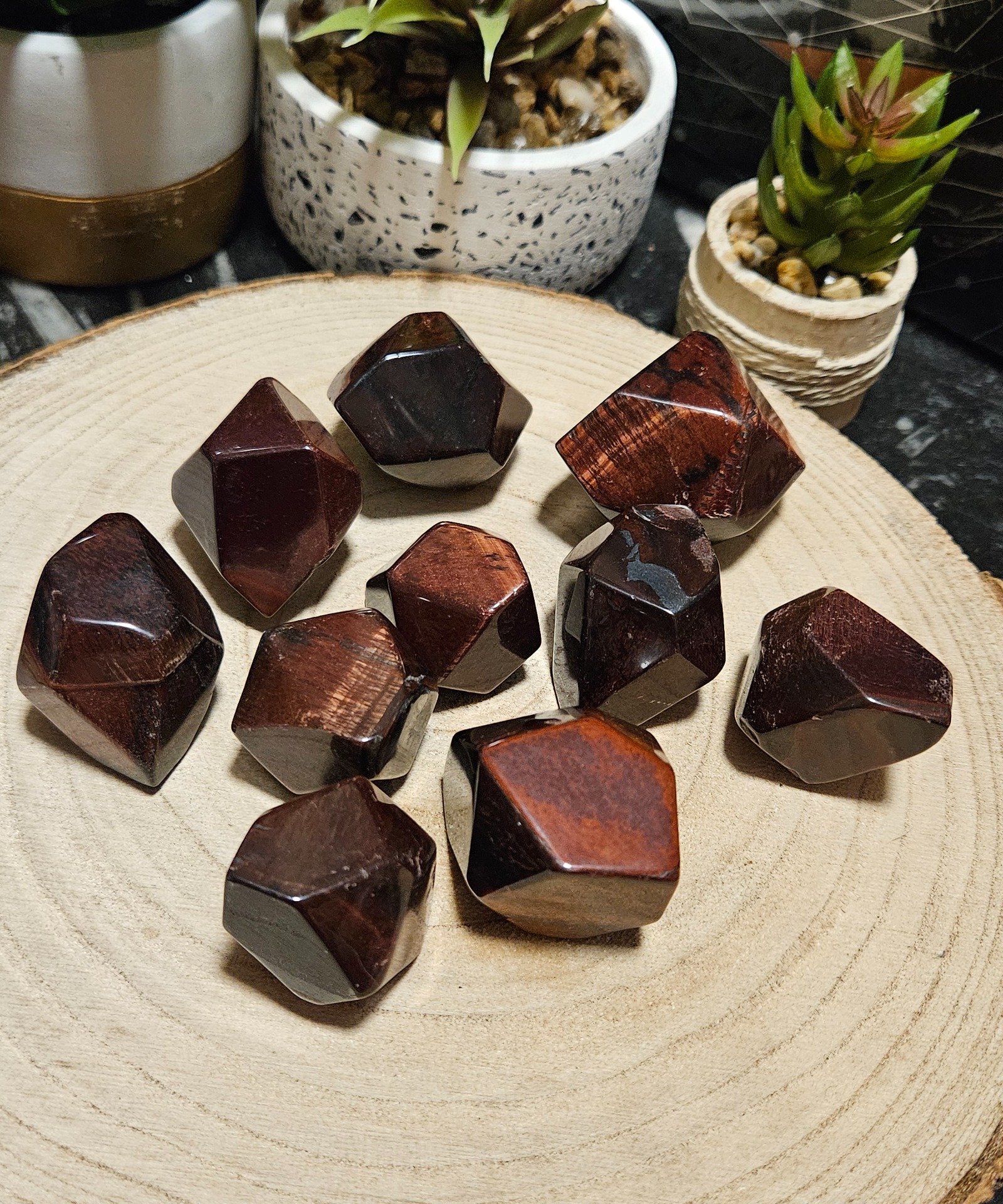 Vneste do svojho priestoru kúsok čistej prírody s brúsenými monolitmi Mačacieho oka z rady Imperial. Tieto kamene s veľkosťou 4-6 cm boli starostlivo opracované tak, aby vynikla ich prirodzená vrstevnatosť a fascinujúci hodvábny lesk. Každý kus je jedinečný svojím tvarom a hrou svetla. Pri objednávke uplatňujeme princíp náhodného výberu, čo znamená, že vám bude zaslaný konkrétny kameň, ktorý si vás intuitívne vyberie.