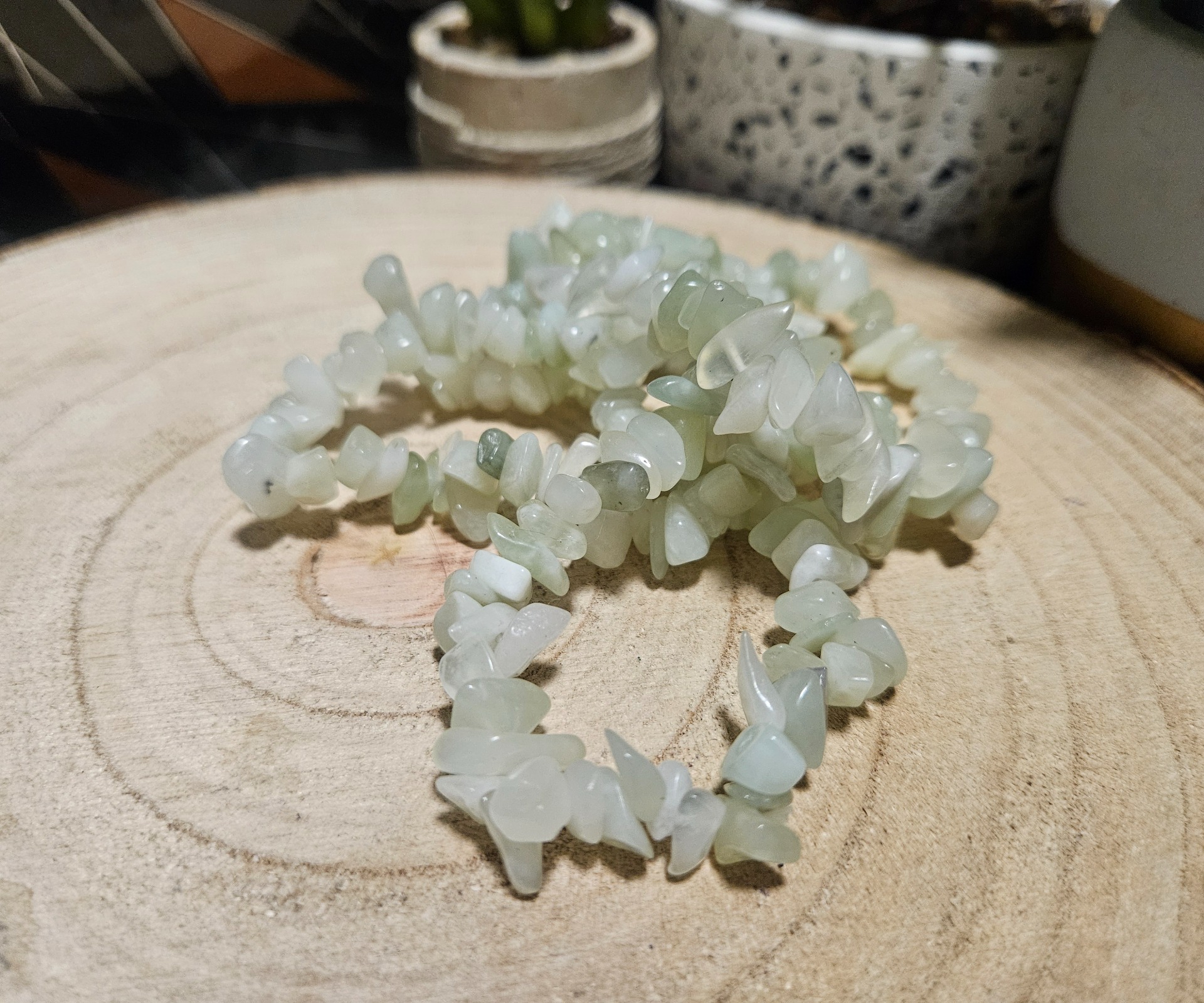 Minerál: Prírodný Jadeit brúsený do nepravidelných kúskov.