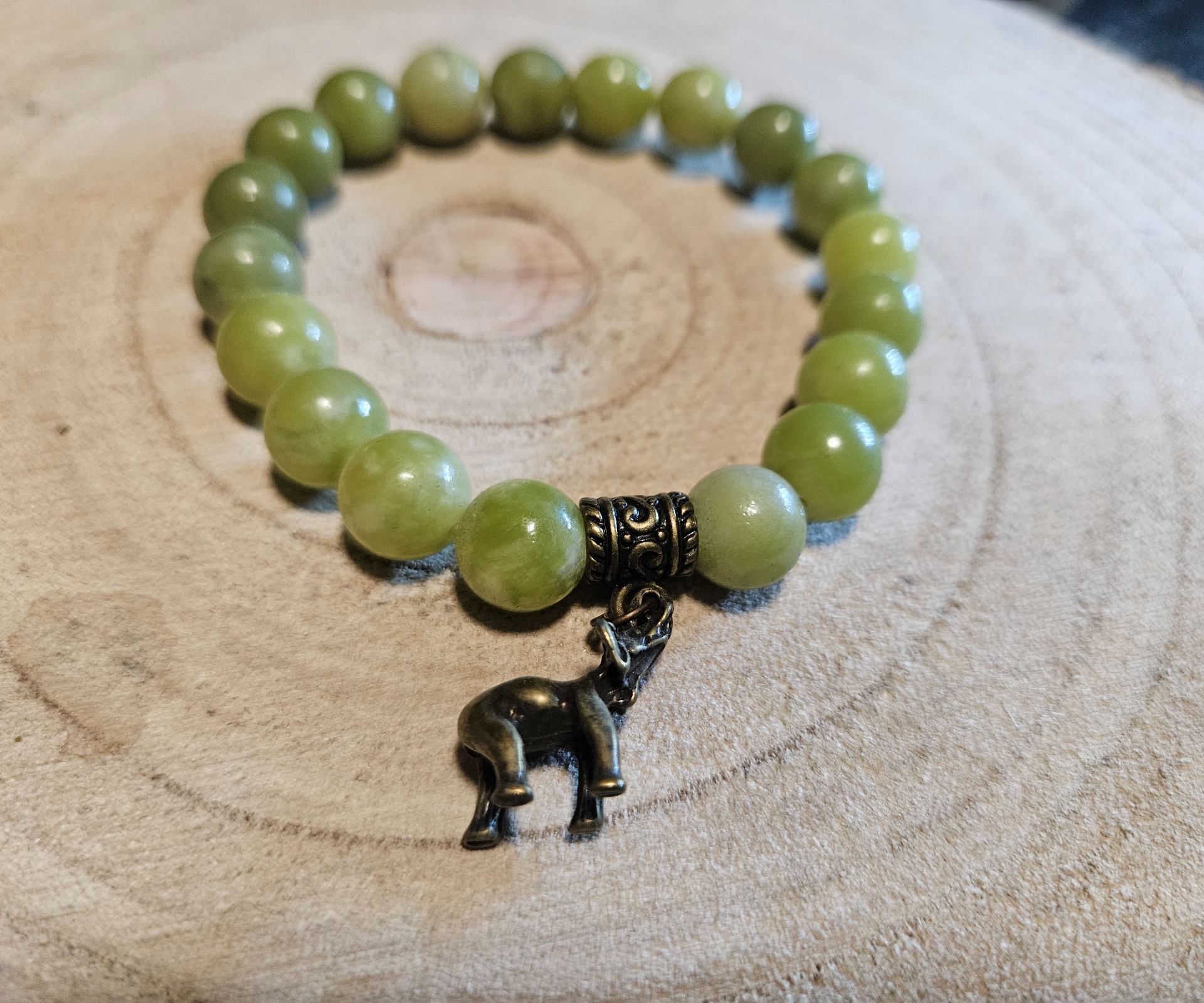 Pritiahnite silu dlhovekosti a stability s týmto jedinečným jadeitovým náramkom. Čistota 8 mm jadeitových guličiek a symbolika prívesku sloníka poskytujú dokonalú ochranu a podporu v každodennom živote. Slon je symbolom múdrosti, vytrvalosti a vernosti, ktorý sa v spojení s mocou jadeitu prinášajúceho šťastie stáva skutočným talizmanom na vašom zápästí. Veľkosť 20 cm a pružná gumička sa postarajú o maximálne pohodlie. Ručne vyrobený kúsok v kvalite Imperial Minerals.