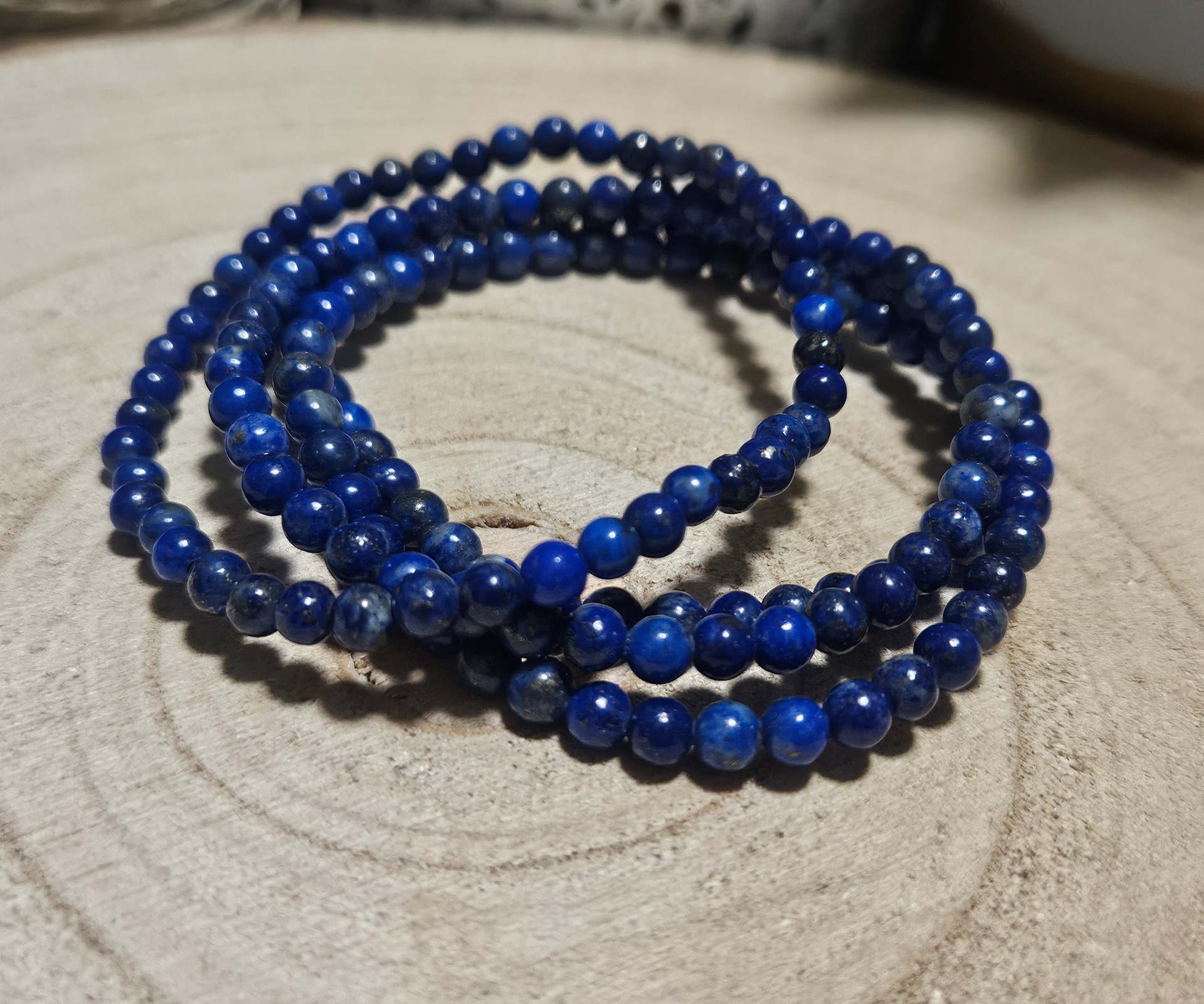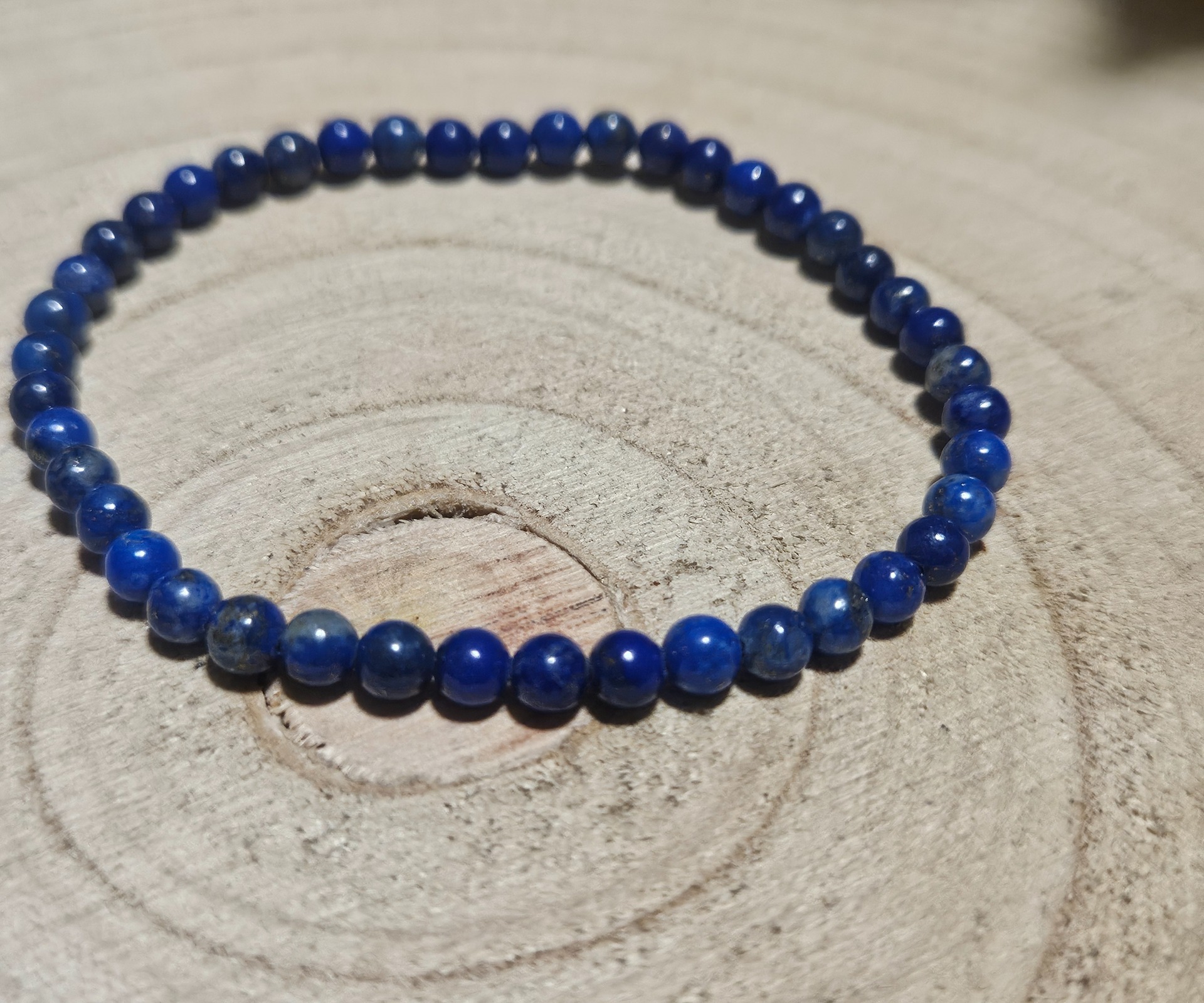 Minerál je prírodný lapis lazuli vybrúsený do hladkých guličiek. Typ šperku je jemný náramok na pružnej gumičke. Veľkosť korálok je 4 mm a dĺžka náramku je 16-18 cm. Vhodný pre ženy aj mužov ako ochranný a energetický šperk. Odporúčame čistiť pod vlažnou tečúcou vodou (krátko) a nabíjať počas splnu na mesačnom svite.