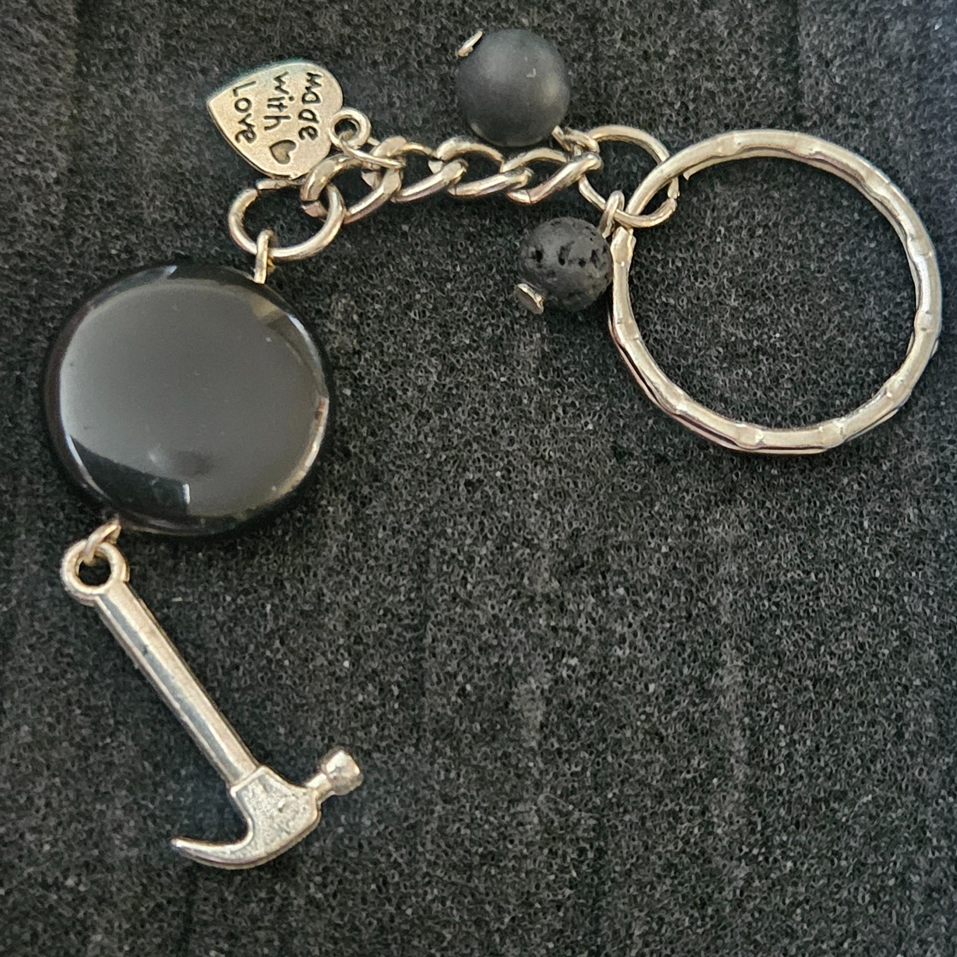 Hľadáš doplnok, ktorý nie je len obyčajnou kľúčenkou, ale tvojím osobným strážcom na každom kroku? Tento unikátny kúsok z línie Imperial v sebe spája surovú silu čierneho obsidiánu a precíznosť ručnej práce. Dominantným prvkom je hladký, plochý obsidiánový kameň, ktorý dopĺňajú kovové detaily, vrátane srdiečka s nápisom „Made with Love“ a symbolického kladiva. Je to ideálny spoločník pre tvoje kľúče alebo tašku, ktorý ti dodá pocit nezlomnosti a bezpečia, nech si kdekoľvek.