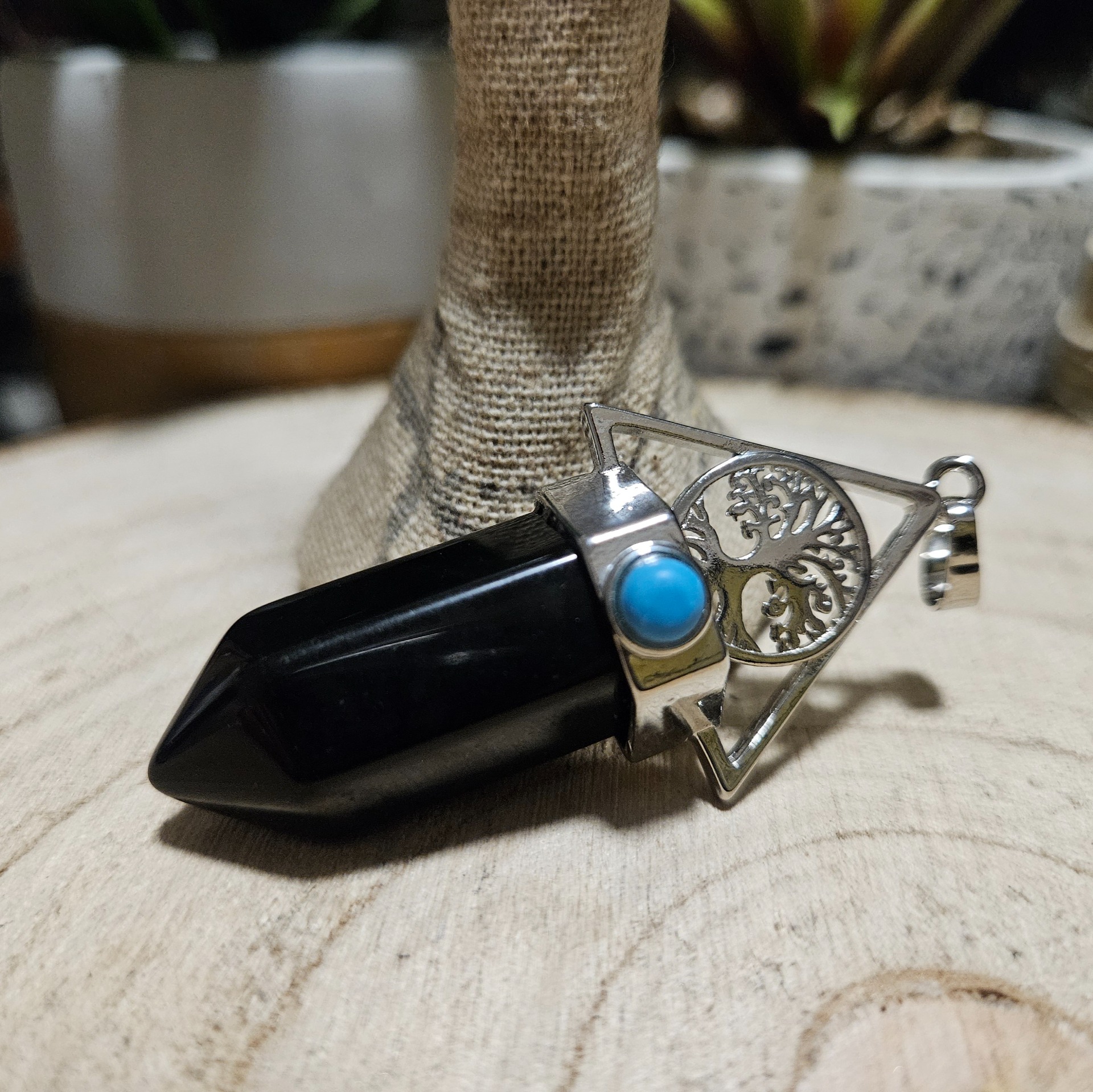 V tvojej magickej praxi tento medailón slúži ako silný uzemňovací talizman. Strom života na obsidiánovom hrote symbolizuje prepojenie tvojich koreňov s duchovnou korunou, čo ti pomáha čerpať energiu z oboch svetov. Čarodejnice ho nosia ako ochranný štít proti energetickým upírom a na posilnenie rituálov spojených s rodovou líniou a rodinnou mágiou. Tyrkysový detail pôsobí ako „tretie oko”, ktoré stráži tvoju pravdu a pomáha ti vyjadriť tvoje magické zámery.