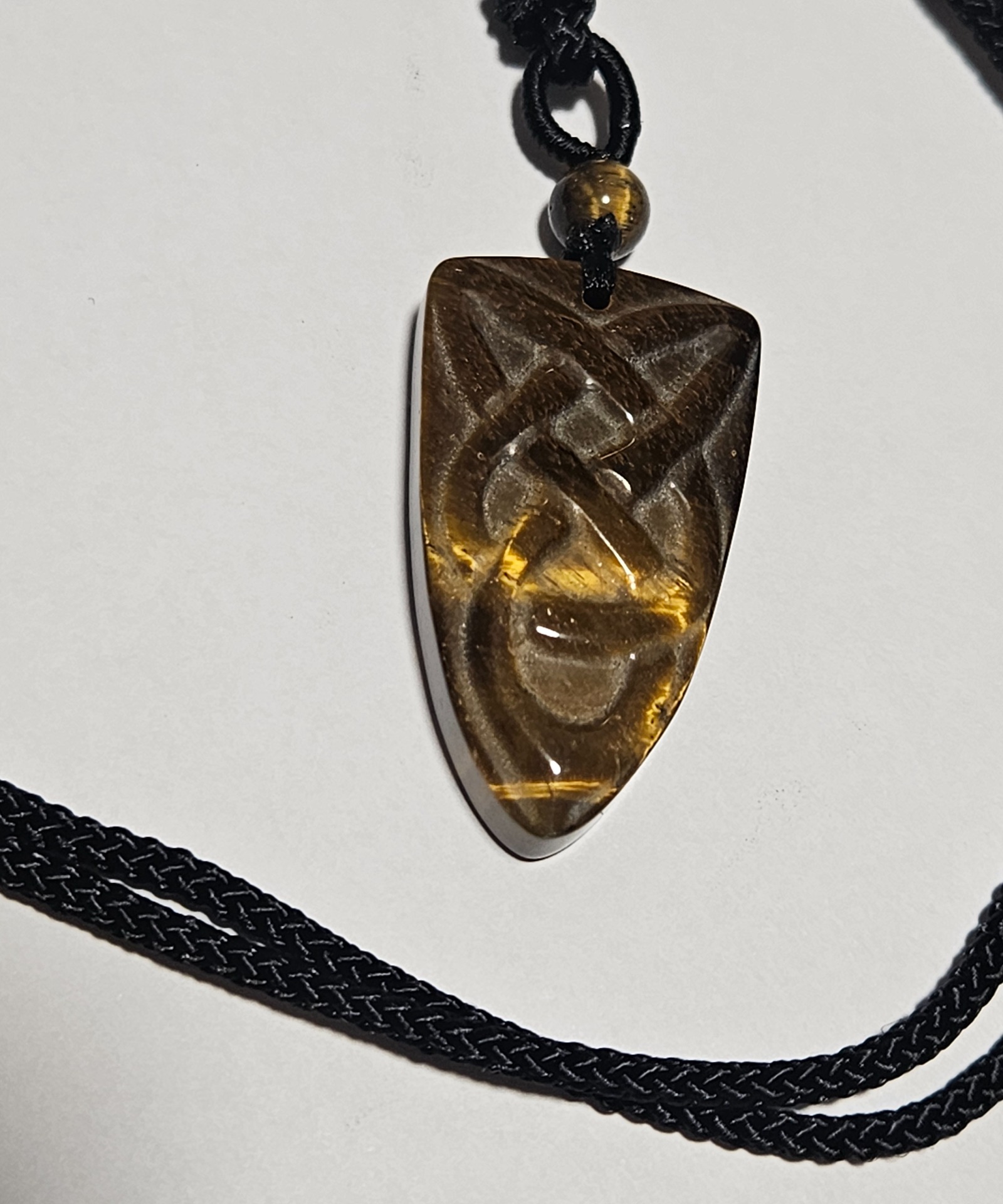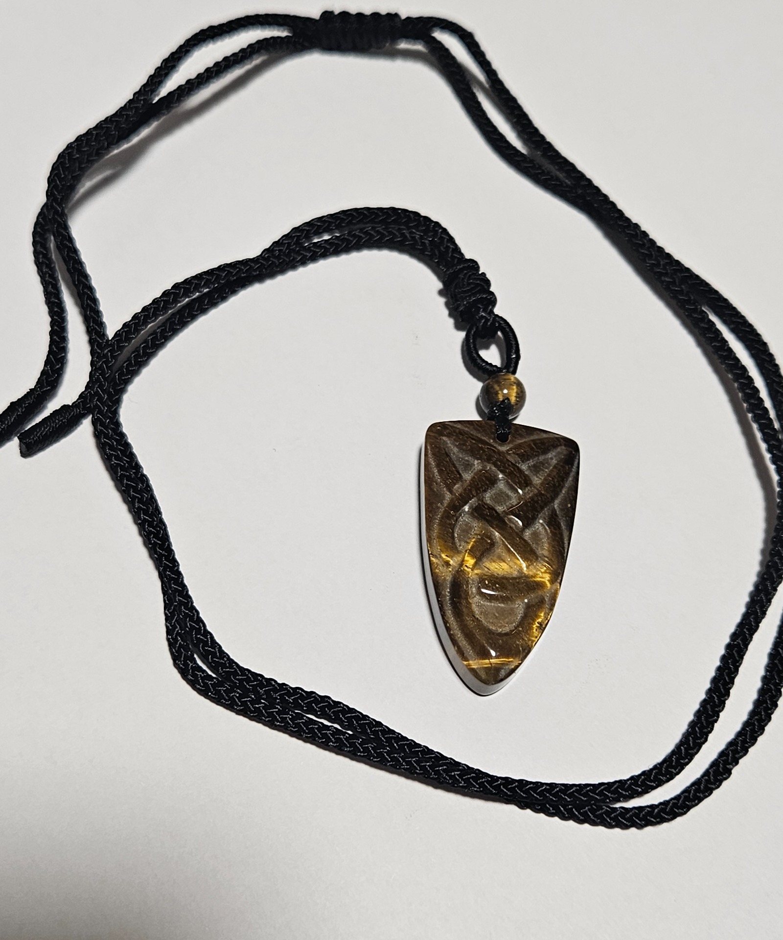 Vyhotovenie: Brúsený minerál s keltským zdobením na čiernej textilnej šnúrke v štýle Imperial.