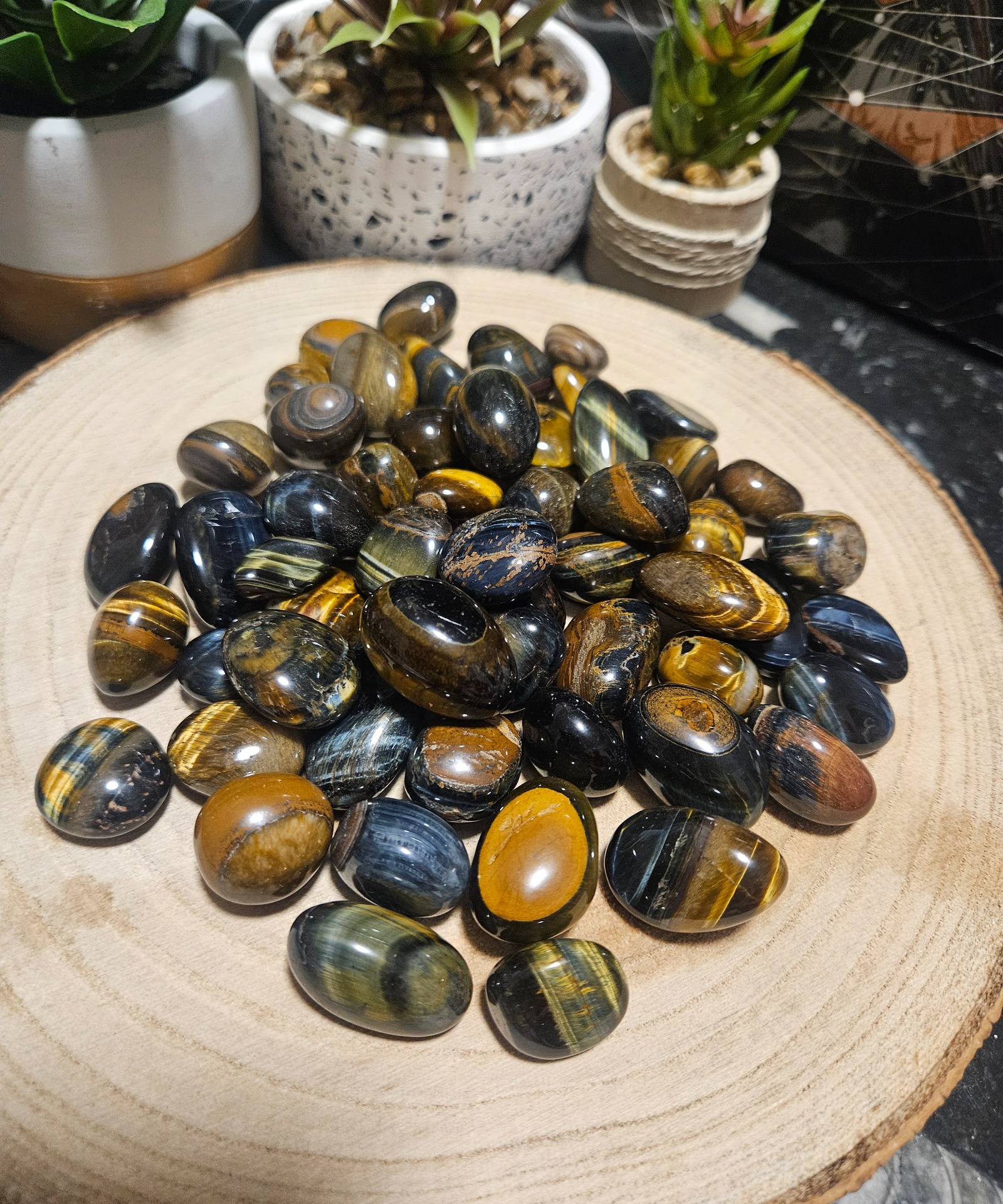 Tigrie oko je známe ako kameň sebavedomia a prosperity. Nosenie týchto malých, ale silných žiaričov pri sebe pomáha odrážať negativitu a dodáva odvahu v stresových situáciách. Verí sa, že trojica minerálov dokáže vytvoriť stabilné energetické pole, ktoré harmonizuje emócie a prináša šťastie. Z hľadiska zdravia sa hladené kamene často používajú pri masáži dlaní na uvoľnenie napätia a podporu vitality.