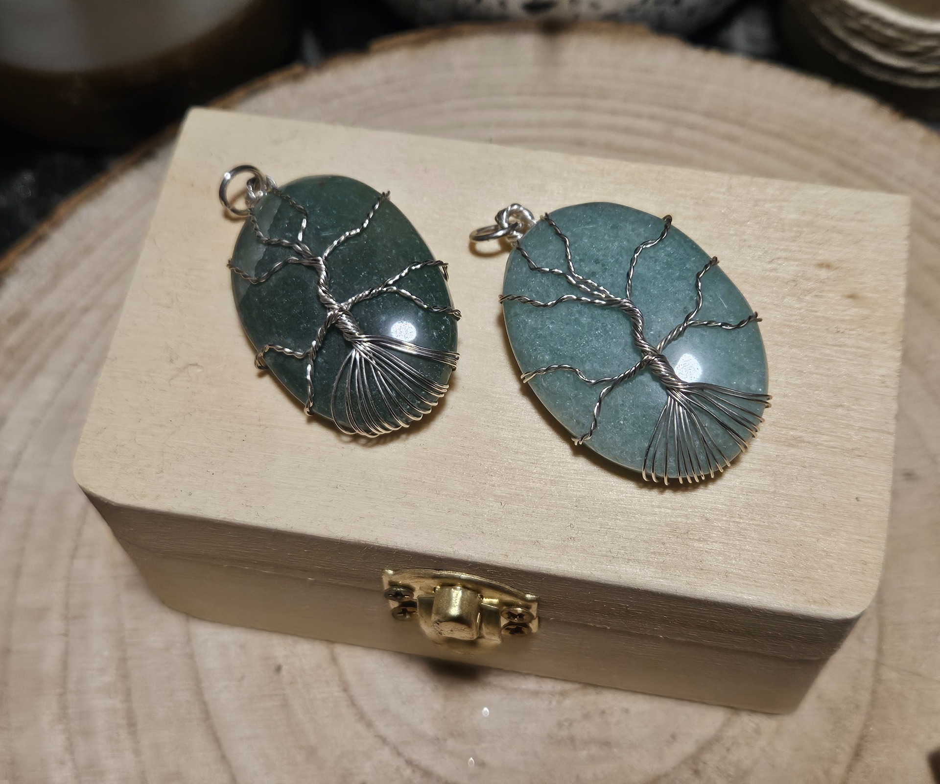 Tento nádherný prívesok „Imperial Tree of Abundance” predstavuje dokonalú harmóniu medzi minerálnou ríšou a symbolikou života. Oválne brúsený aventurín s veľkosťou 3,5-4 cm slúži ako pevný základ pre ručne pletený strom života z jemného drôtu. Korene a vetvy stromu objímajú kameň, čím vytvárajú vizuálne podmanivý šperk, ktorý v sebe nesie hlboký význam prepojenia s prírodou.