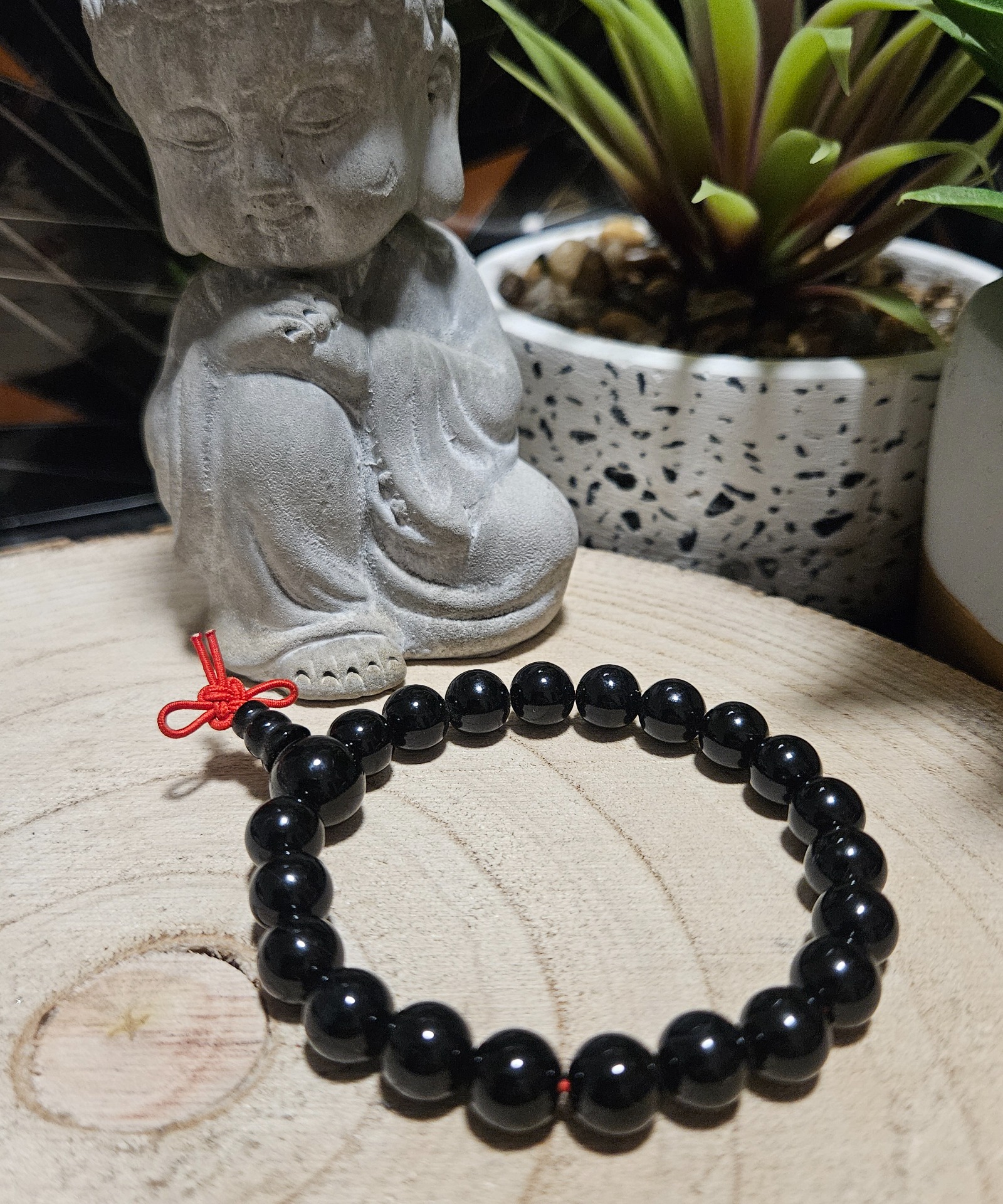 Z hľadiska zdravia tento náramok pôsobí ako stabilizátor nervovej sústavy. Čierny onyx pomáha zmierňovať pocity úzkosti, posilňuje sluch a podporuje regeneráciu kostnej drene. Vďaka Guru korálke, ktorá slúži ako energetický uzol, pomáha náramok udržiavať rovnováhu medzi ľavou a pravou mozgovou hemisférou, čo vedie k lepšej koncentrácii a zníženiu psychického vyčerpania.