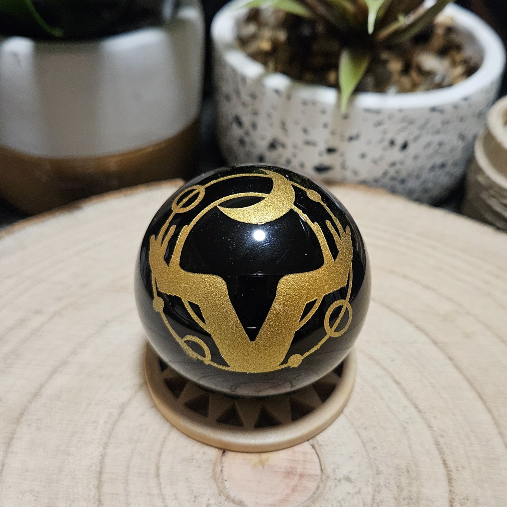Uchopte svoju budúcnosť pevne do rúk s touto magickou guľou z línie Imperial. Čierny obsidián v kombinácii so zlatým vyobrazením rúk držiacich polmesiac symbolizuje prijatie vesmírnych darov a silu tvoriť vlastnú realitu. Tento kúsok vnáša do priestoru pocit pokory pred vesmírom, ale zároveň vedomie vlastnej moci.
