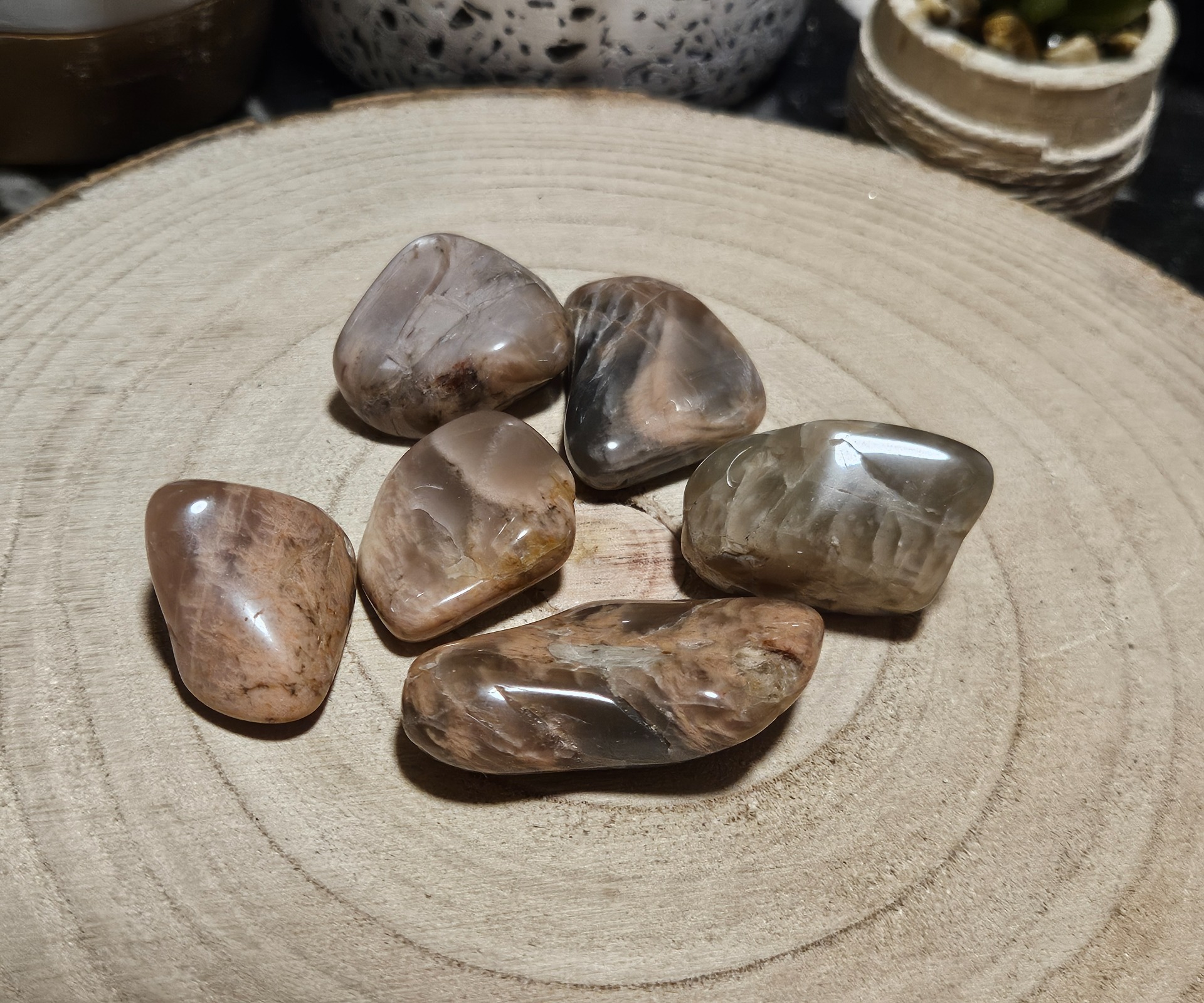 Sú minerály, ktoré odmietajú byť spútané pravidelnými tvarmi. Tento voľne brúsený mesačný kameň zachováva prirodzené línie rastu kryštálu, zatiaľ čo leštenie mu dodáva hodvábny lesk a hĺbku. Pôsobí ako stuhnutý kúsok mesačného svitu, ktorý sa pohodlne zmestí do dlane, vďaka čomu je ideálny na meditáciu alebo ako hmatka. Pomáha upokojiť myseľ a zosilniť vnútorný hlas.