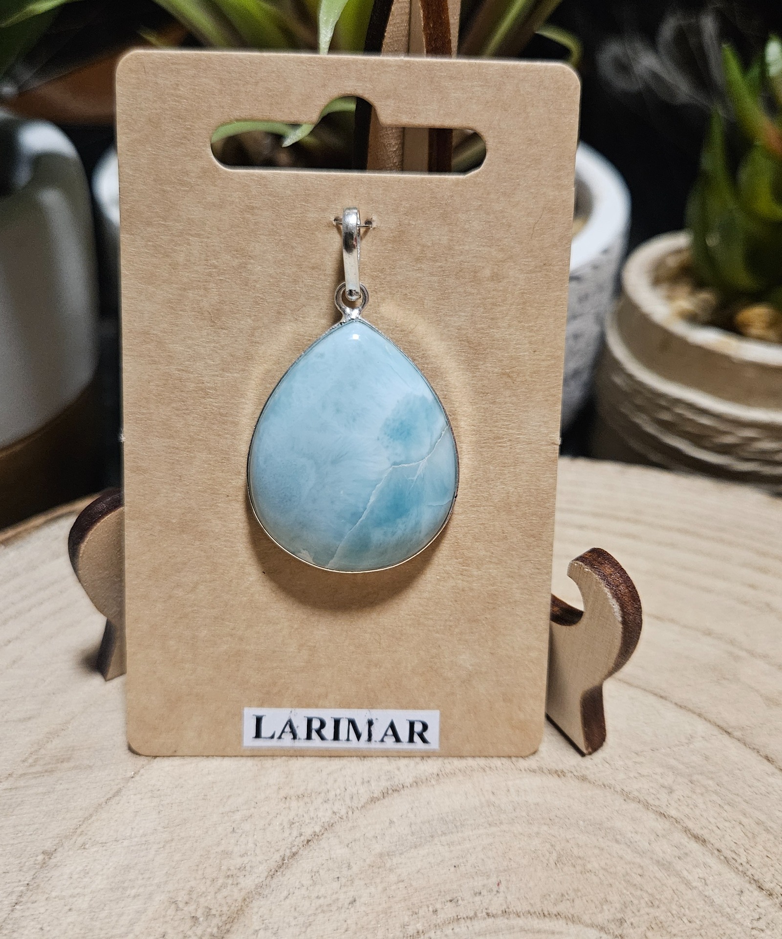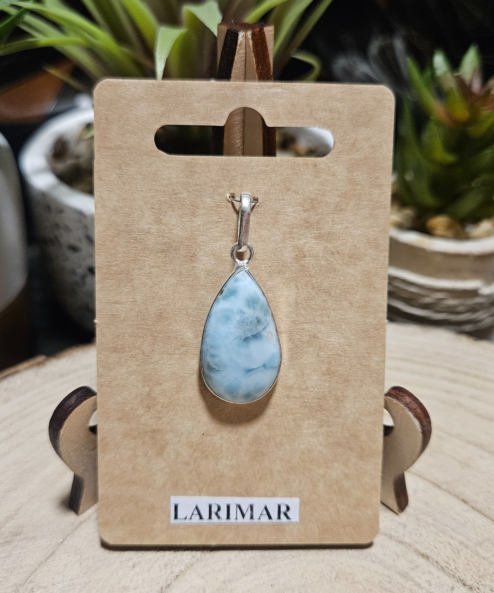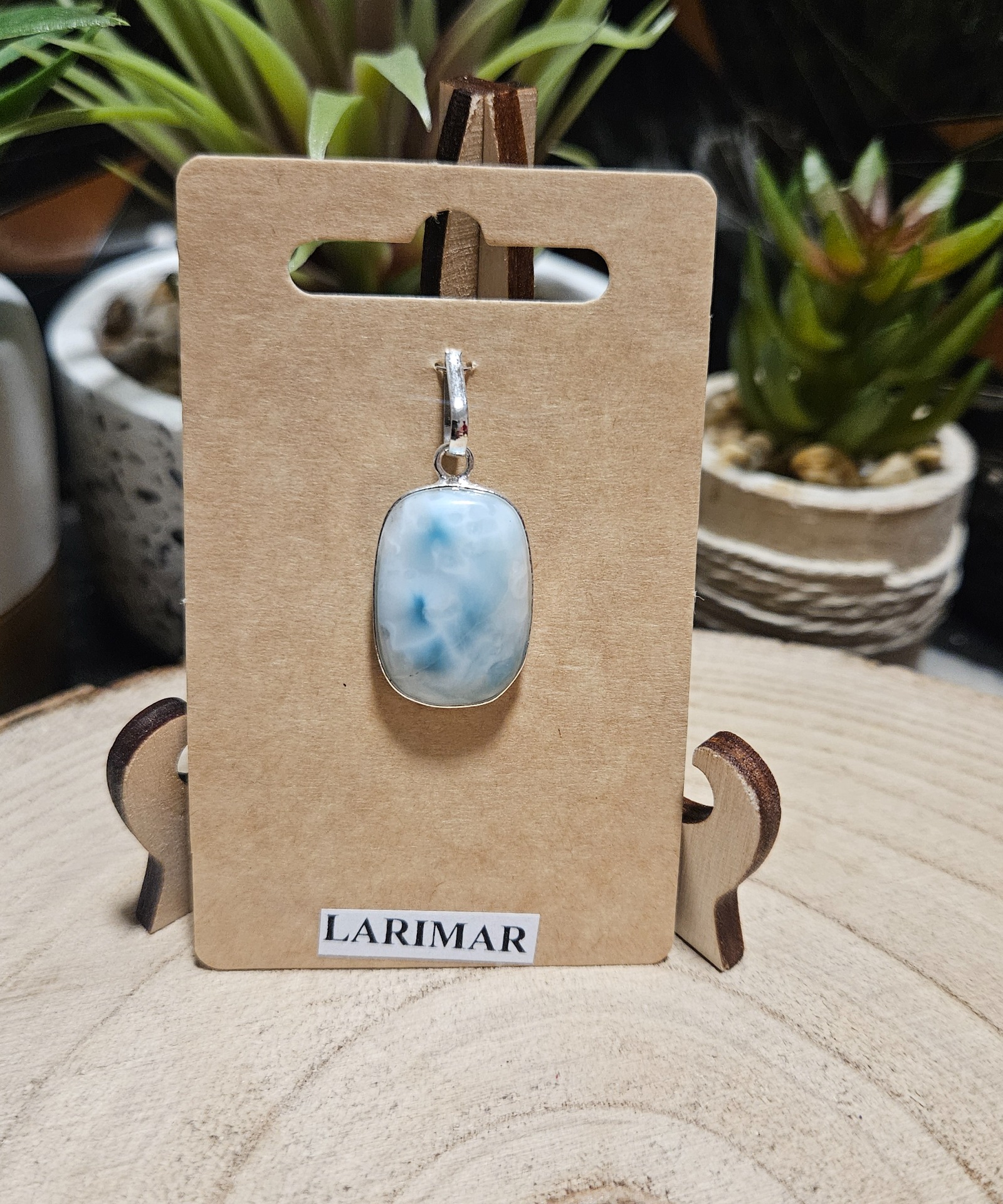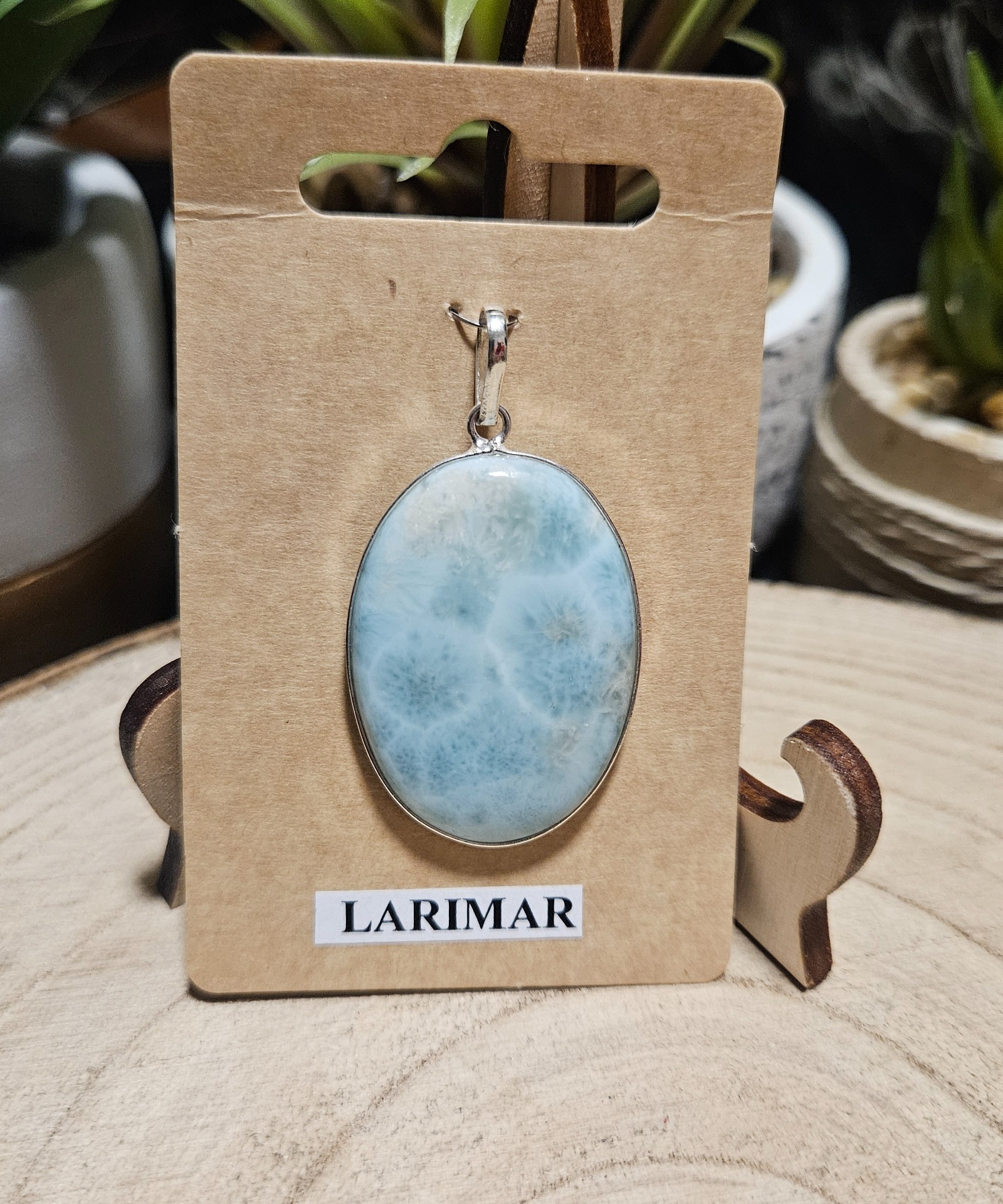 Tento Larimarový prívesok je stelesnením jedinečnosti a pokojovosti. Úžasná modrá a biela farba kameňa evokuje stretnutie Karibského mora a oblohy, pričom každý kus sa líši tvarom – či už ide o ovál, kvapku, obdĺžnik alebo polmesiac. Nos ho v blízkosti Hrdla, aby posilnil tvoje úprimné sebavyjadrenie a zmiernil každodenný stres. Postriebrené osadenie dodáva tomuto vzácnemu minerálu extra eleganciu.