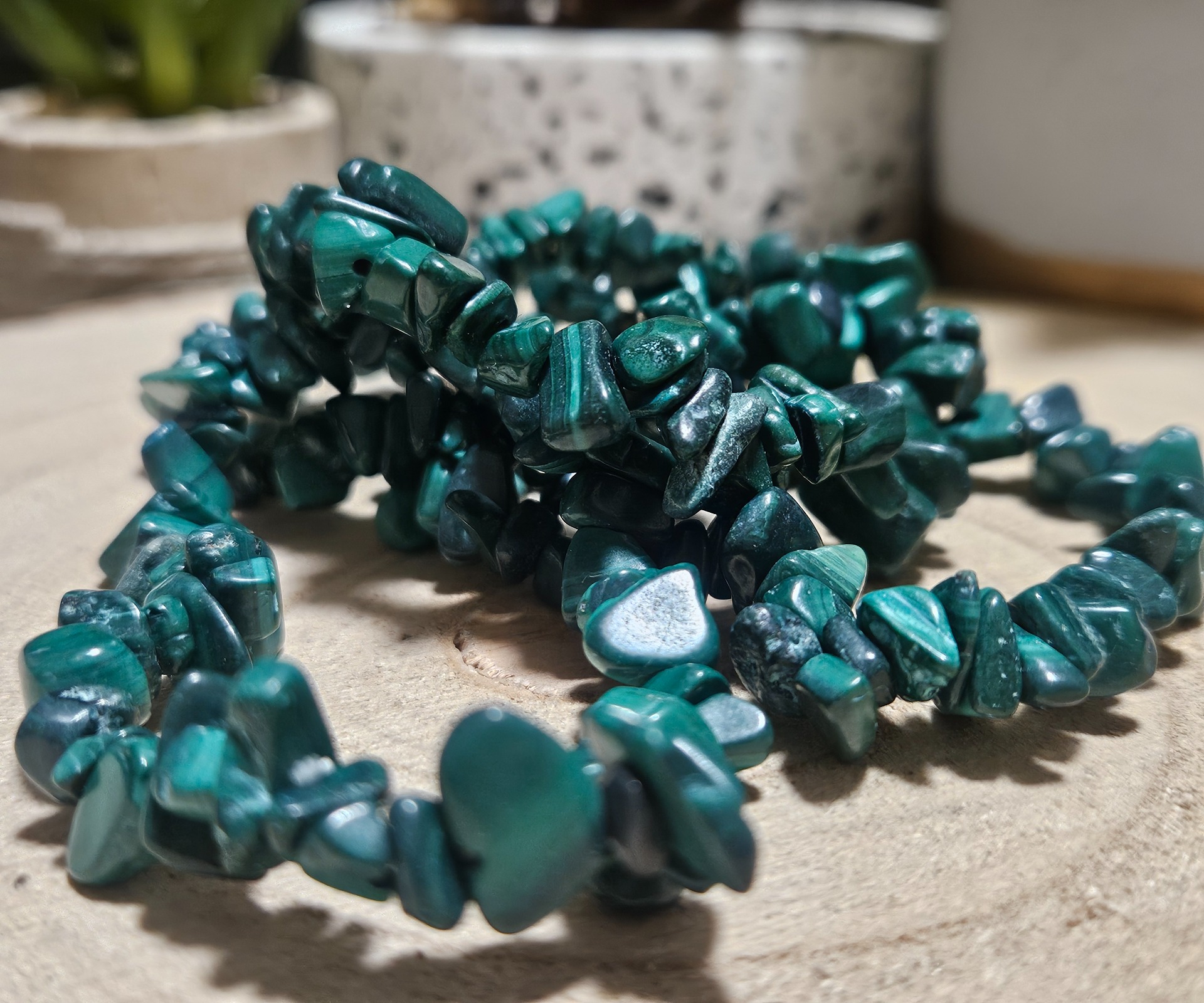 Je to silný ochranný kameň, najmä u detí slúži ako ochrana proti pádom.Ochraňuje na cestách, pohlcuje negatívne energie a odoberá z tela škodliviny.Neutralizuje rádioaktívne žiarenie a elektromagnetické znečistenie. Malachitupokojuje nervovú sústavu a podporuje pokojný spánok. Pri obchodnýchrokovaniach pomáha uzatvárať dobré obchody. Čistí čakry, otvára srdcenepodmienené láske, vyťahuje na povrch psychosomatické problémy. Lieči traumyspojená so sexom v minulých životoch, pomáha pri dyslexiu, zvyšuje intuíciu.