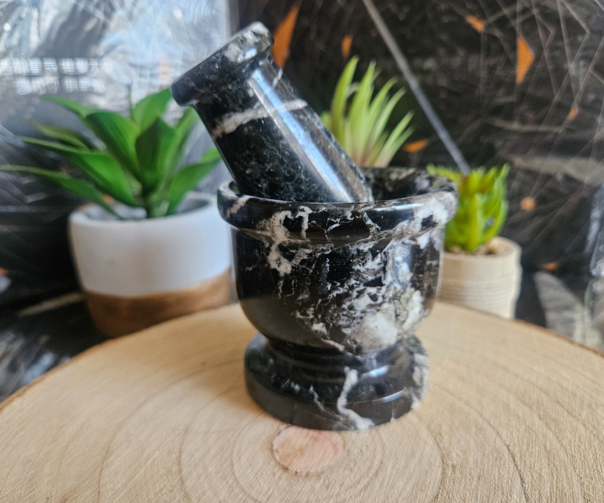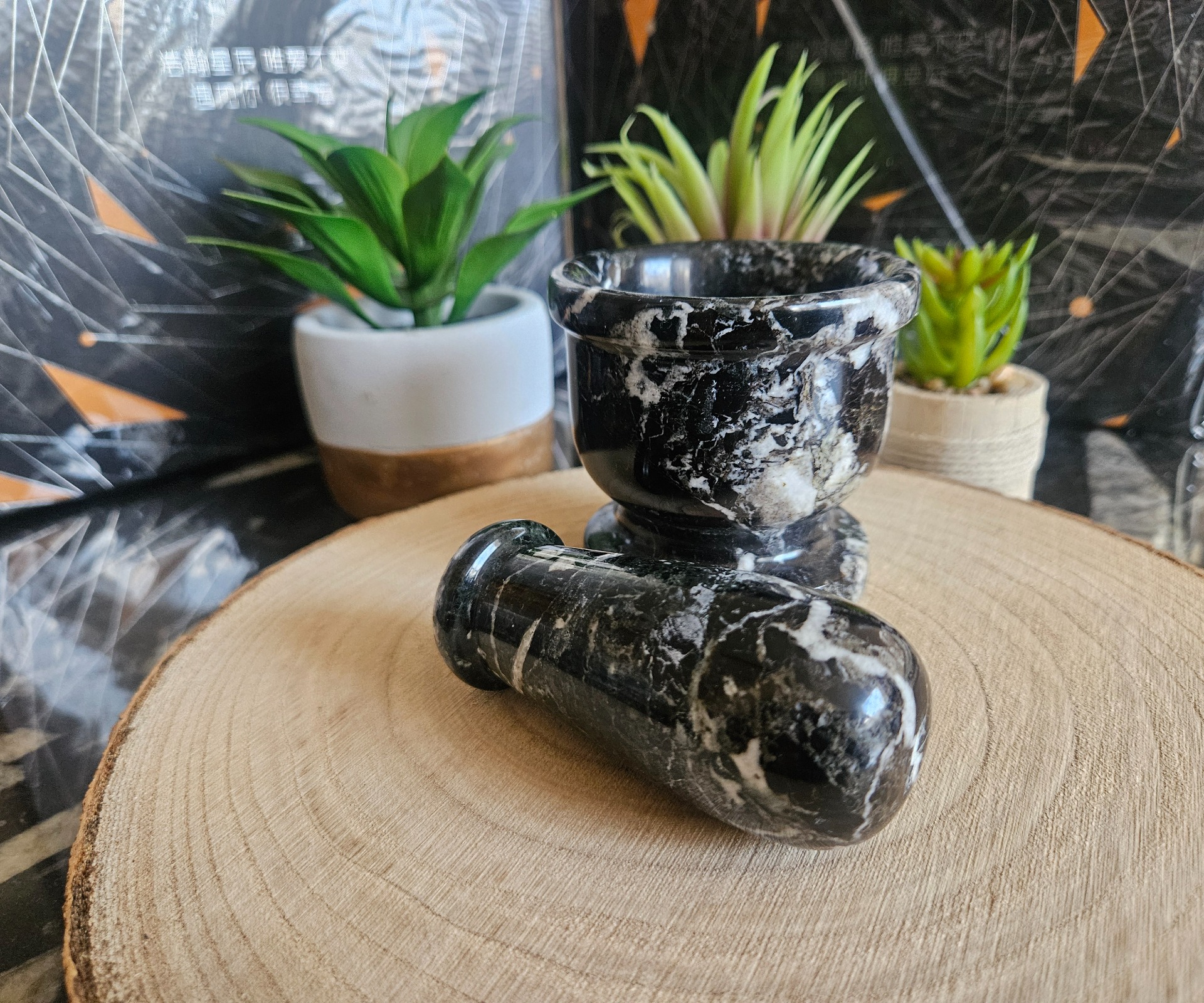 Tento krásny kúsok z pakistanského ónyxu využijete na rozdrvenie korenia a byliniek či na prípravu pesta, masla alebo nátierok.