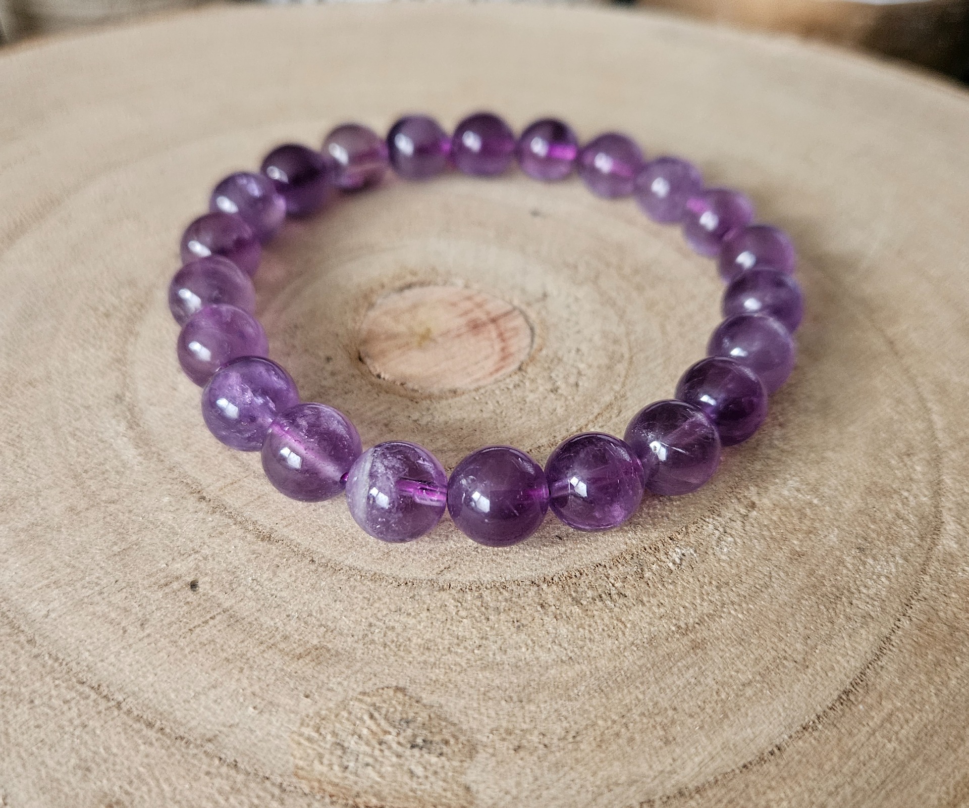 Nosenie ametystu na tele ako šperku podporuje našu intuíciu a dáva nám netradičné nápady. Kontroluje nečakané výbuchy nálad a ukľudňuje prudké povahy. Hladkanie alebo držanie ametystu uvoľňuje pozitívnu energiu. Pomáha k úspechu v biznise.