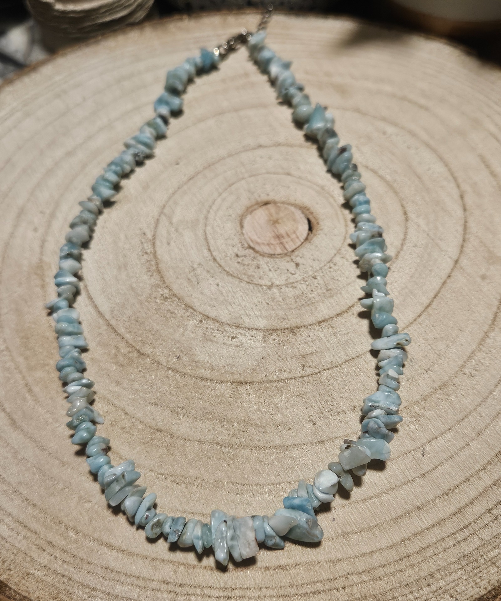 Priprav sa na trochu atmosféry z dominikánskej pláže! Tento náhrdelník z Larimarových štiepok ti prinesie modrú farbu oceánu a čistý pokoj. Larimar ti pomôže uvoľniť sa, zmierňuje napätie a pomáha ti komunikovať úprimne a s čistým srdcom. Nos ho v blízkosti Hrdla (jeho dĺžka 45–50 cm je na to ideálna), aby podporil funkciu tvojej Krkovej Čakry. Je to ako rýchla mini dovolenka na tvojom krku!