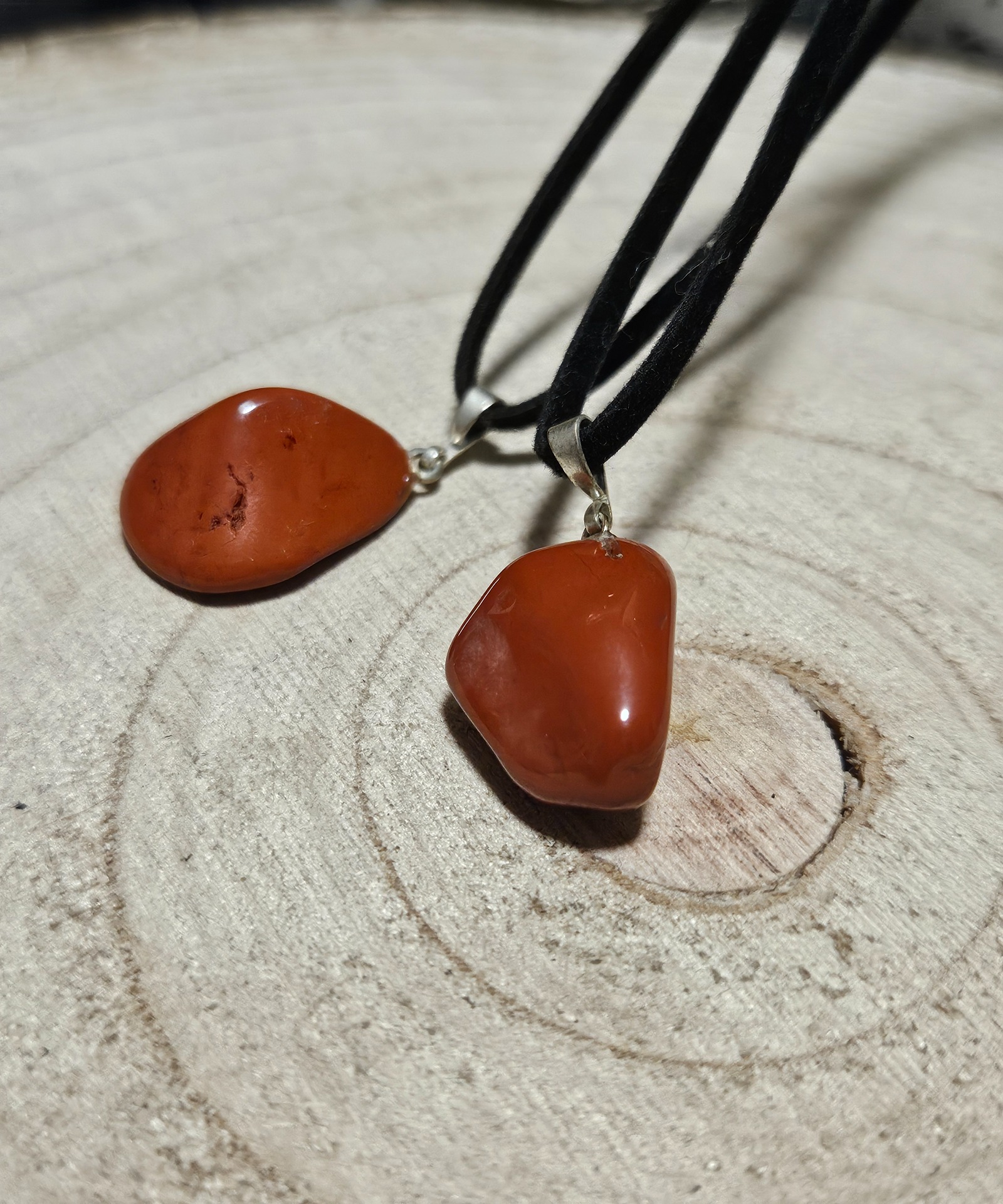 Tento prívesok z červeného jaspisu v sebe nesie hlbokú, uzemňujúcu energiu Zeme. Svojimi bohatými, červenkastými odtieňmi je symbolom stability, sily a odvahy. Jednoduchý, no elegantný dizajn prívesku umožňuje vyniknúť prirodzenej kráse kameňa. Dopĺňa ho čierny kožený remienok, ktorý zaisťuje pohodlné a štýlové nosenie. Veľkosť prívesku je približne 1,5-2 cm. Upozorňujeme, že pri výbere sa posiela náhodný kus, takže každý prívesok je jedinečný a neopakovateľný.