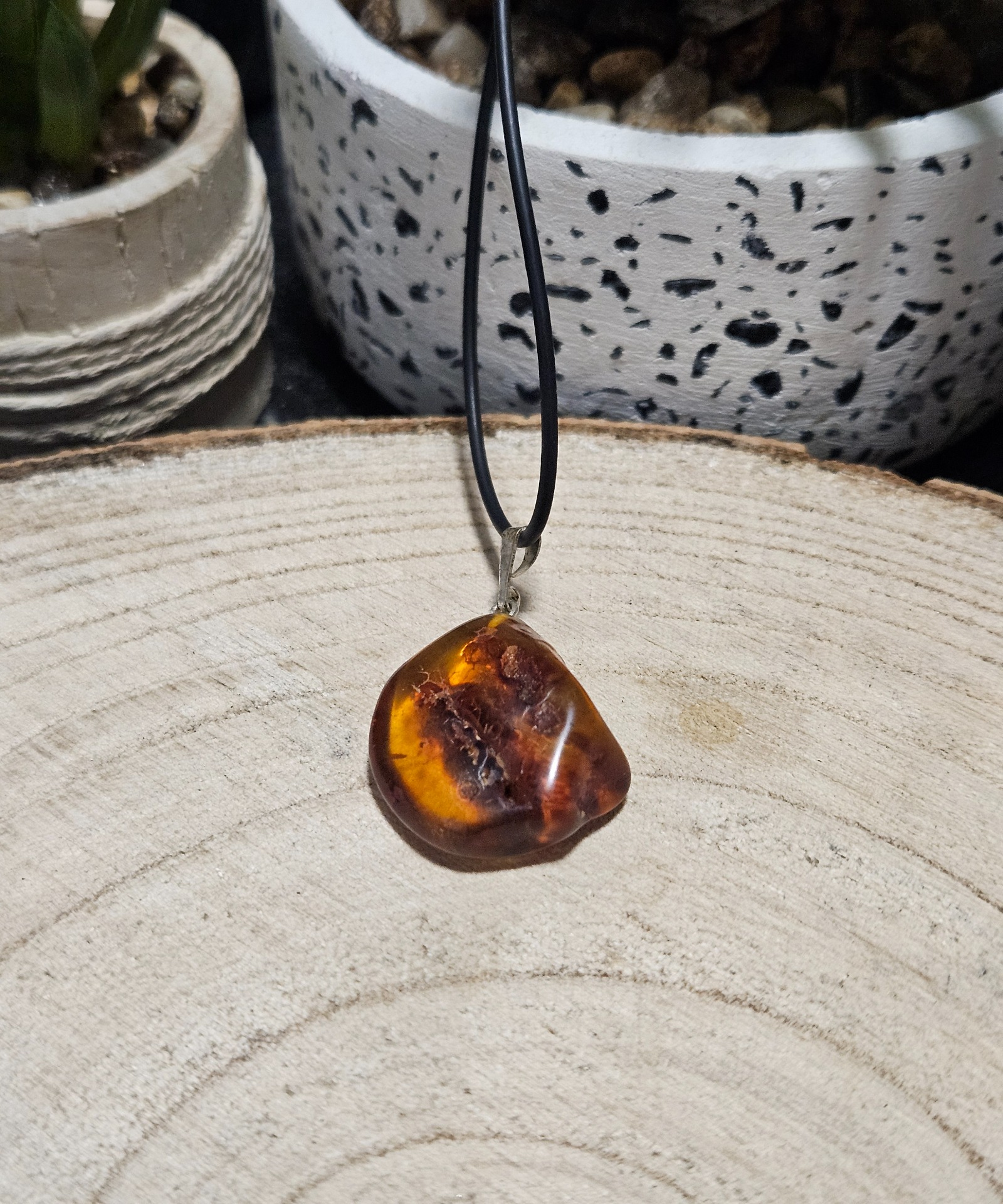 Tento prívesok z jantáru v sebe nesie silu a teplo prírody, ako úžasný kúsok skamenenej živice. Prívesok s veľkosťou 2-2,5 cm je každý jedinečný, s osobitými vnútornými vzormi, ktoré sa formovali milióny rokov. Prívesok dopĺňa elegantný čierny náhrdelník s gumeným vzhľadom a uzáverom, ktorý zaisťuje pohodlné a moderné nosenie. Jantár je tradične považovaný za kameň, ktorý zmierňuje stres a rozjasňuje dušu.