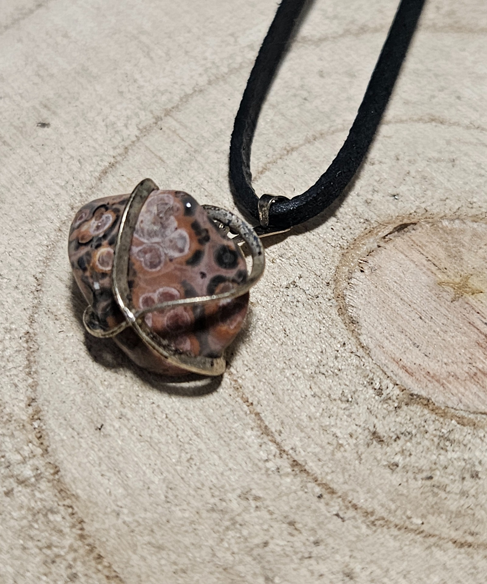 Tento prívesok z leopardieho jaspisu so svojím jedinečným škvrnitým vzorom evokuje divokú, nedotknutú silu prírody. Prívesok, umiestnený v jemnej kovovej klietke, je dokonalým doplnkom pre tých, ktorí hľadajú vnútornú rovnováhu a silu. Kožený remienok nielenže zaisťuje pohodlné nosenie, ale tiež posilňuje pocit spojenia s prírodou. Veľkosť prívesku je približne 1,5-2 cm. Upozorňujeme, že pri výbere sa posiela náhodný kus, takže každý prívesok je jedinečný a neopakovateľný.