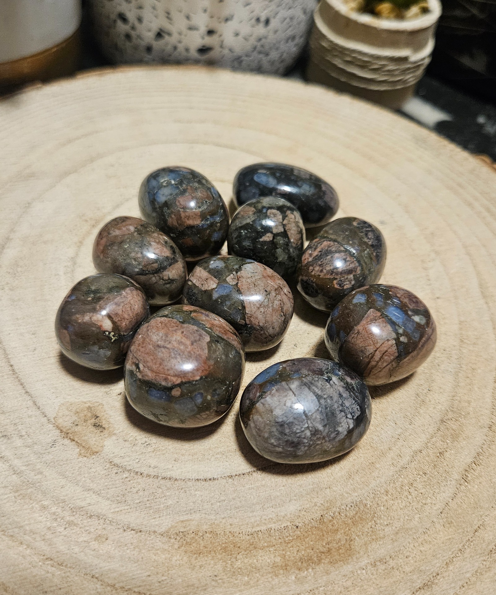 Tieto špeciálne hmatky z kameňa Que Sera som vybrala do ponuky preto, aby ti pomohli nastoliť každodennú harmóniu. Tento minerál je skutočnou energetickou „elektrárňou“, ktorá je prirodzenou zmesou viacerých minerálov, vďaka čomu sa pýši jedinečným hnedo-modrým fľakatým vzorom. Každý kus je hladko vybrúsený, príjemný na dotyk a dokonale padne do dlane, čo z neho robí ideálneho spoločníka pri meditácii alebo v stresových situáciách. Que Sera je kameňom vnútornej slobody: pomáha opustiť obavy z budúcnosti a povzbudzuje ťa dôverovať prirodzenému toku života.