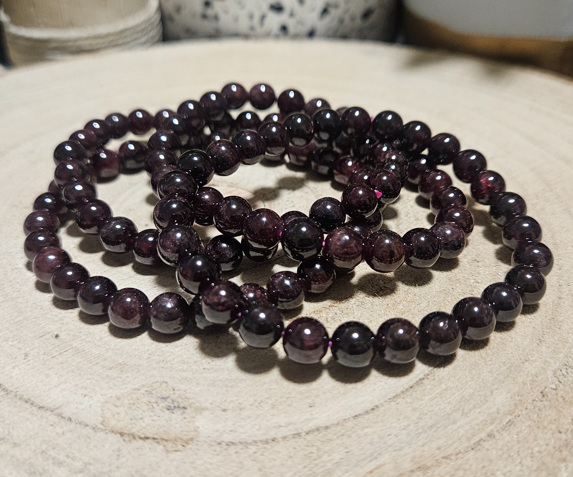 Predstavte si kúsok nočnej oblohy pretkaný hrejivým svetlom zapadajúceho slnka – presne tak na mňa pôsobí tento náramok z pravého granátu. Korálky s priemerom 7 mm sú už na pohľad masívnejšie a v dlani pôsobia príjemne chladivo, kým sa neprehrejú vaším vlastným teplom. Ich farba je hlboká, temne vínová, ktorá pri každom dopade lúča svetla odhalí svoje tajomné vnútorné odlesky. Náramok sme pre vás pripravili na pružnej gumičke, ktorá sa s láskou prispôsobí každému pohybu vašej ruky, takže ho takmer nebudete cítiť, no jeho prítomnosť vás bude neustále povzbudzovať. Granát je už po stáročia milovaný ako kameň, ktorý v nás prebúdza driemajúcu energiu, dodáva chuť do života a chráni naše srdce pred smútkom. Je to ideálny spoločník pre ženu, ktorá hľadá eleganciu spojenú so silnou ochranou prírody.