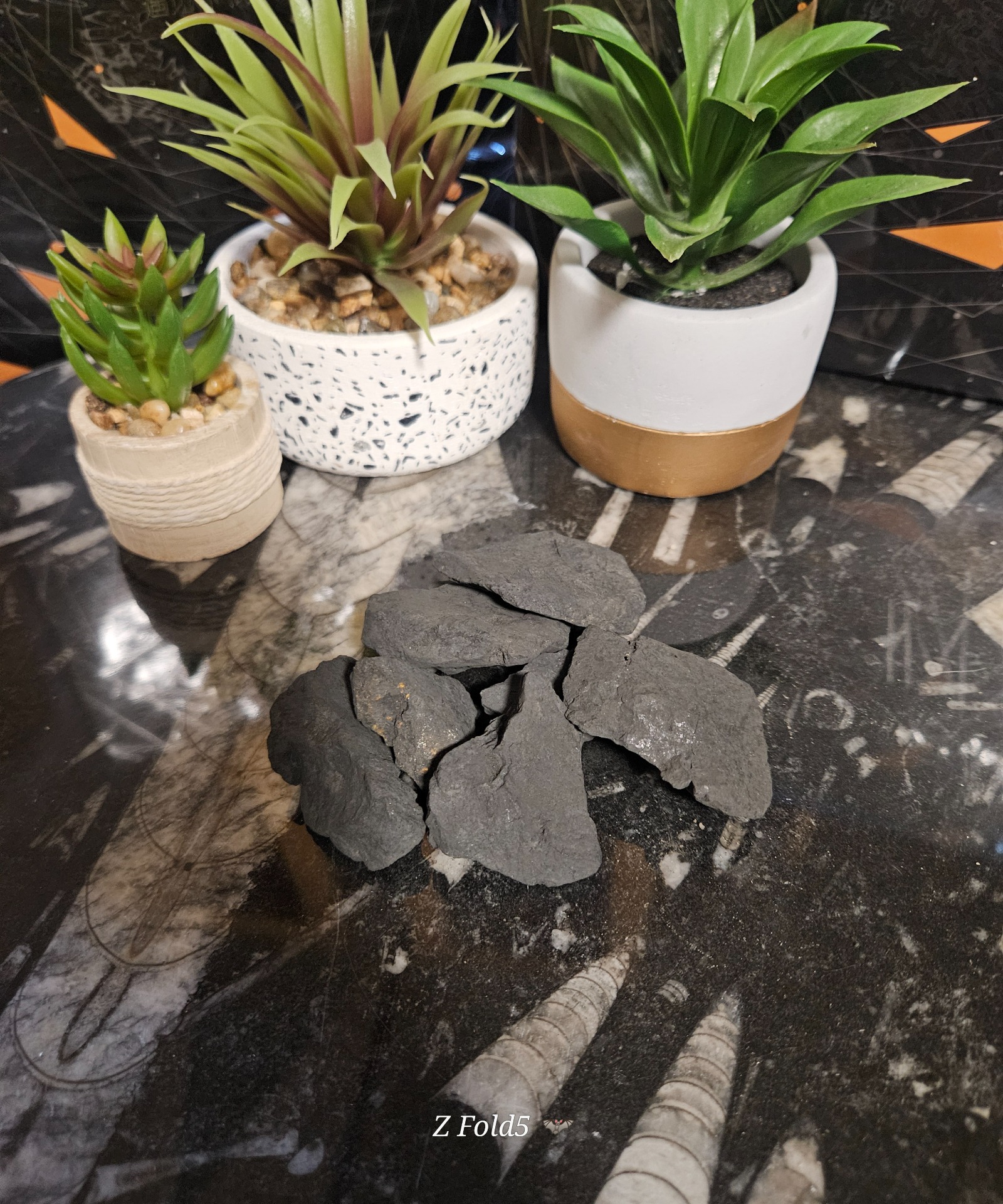 Upozornenie: šungit zanecháva čiernu farbu na rukách a povrchu, preto každý kus dodávame v igelitovom sáčku. Bežným detergentom je možné vyčistiť. Z látky – oblečenie nemusí farba pustiť.