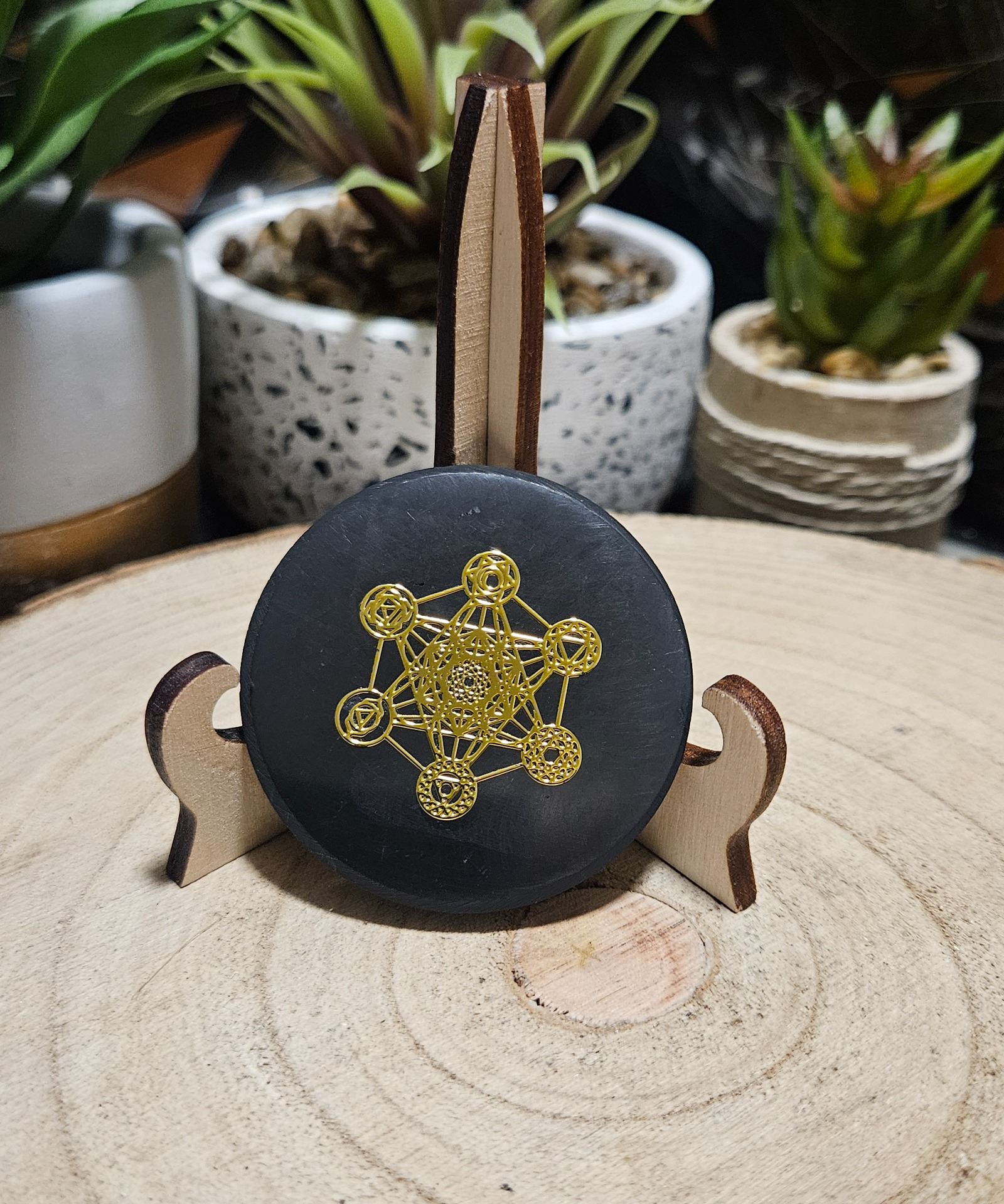 Šungitový disk so zlatou Metatronovou kockou (50 mm)