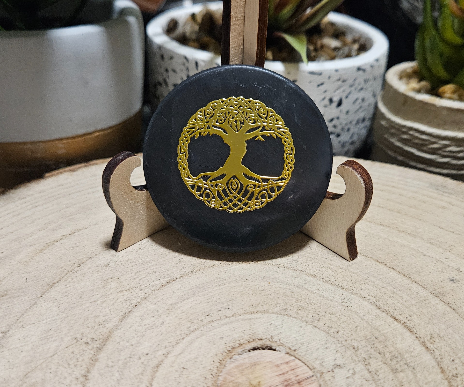 Šungitový disk so zlatým Stromom života (50 mm)