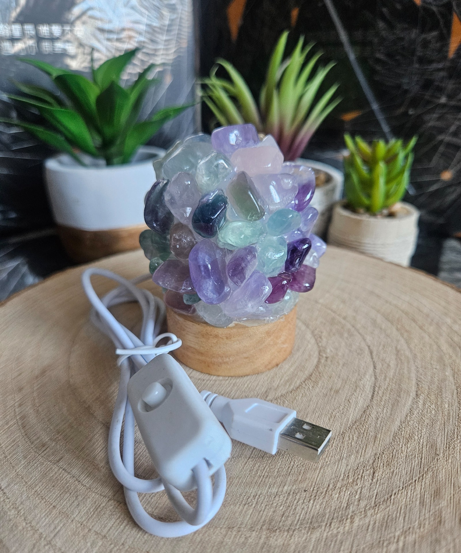 Táto krásna, ručne vyrobená minerálna lampa je vyrobená z prírodného Fluoritu,ktorý vyžaruje harmóniu a pozitívnu energiu. Jeho špeciálny vzhľad a duchovný význam z neho robia perfektnú voľbu pre dekoráciu domácnosti alebo darček.