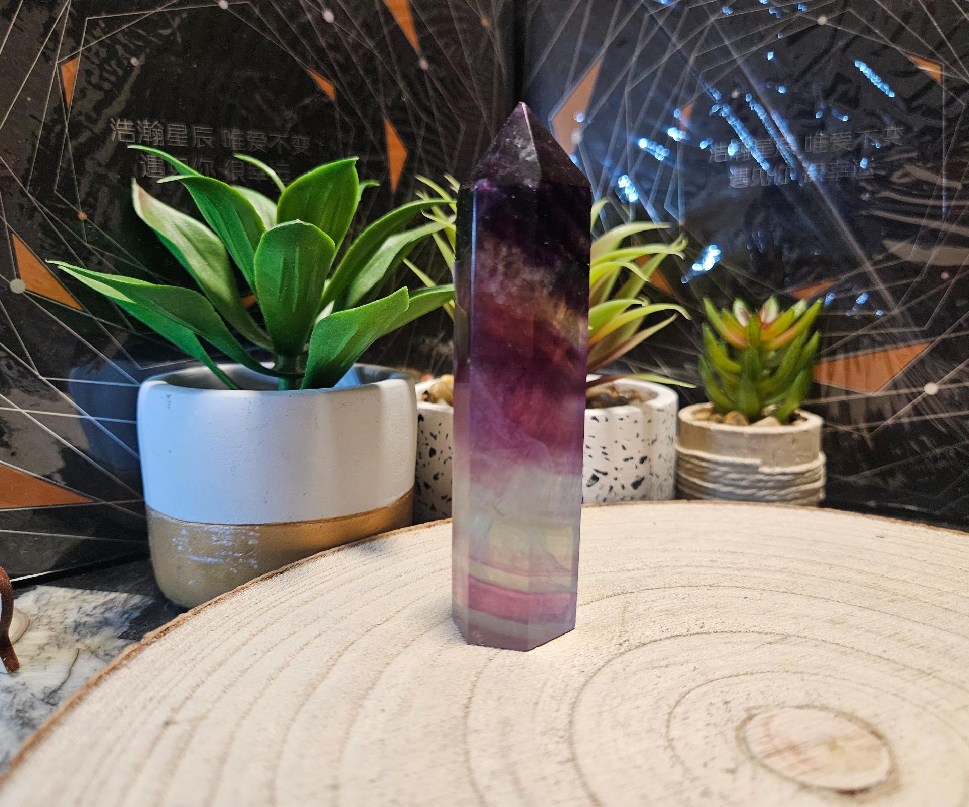 Tento impozantný Fluoritový Obelisk, vysoký 11 cm a vážiaci 124 gramov, nesie všetku energiu a krásu Fluoritu. Nádherné, hlboké fialové, červenkasté a žltkasté pásy kameňa spájajú duchovné poznanie, vitalitu a ochranu. Pri tejto veľkosti už kryštál nie je len dekoráciou, ale vážnym energetickým centrom a ochrancom priestoru. Jedná sa o jedinečný kus, ktorý predstavuje vrchol Fluoritových veží.
