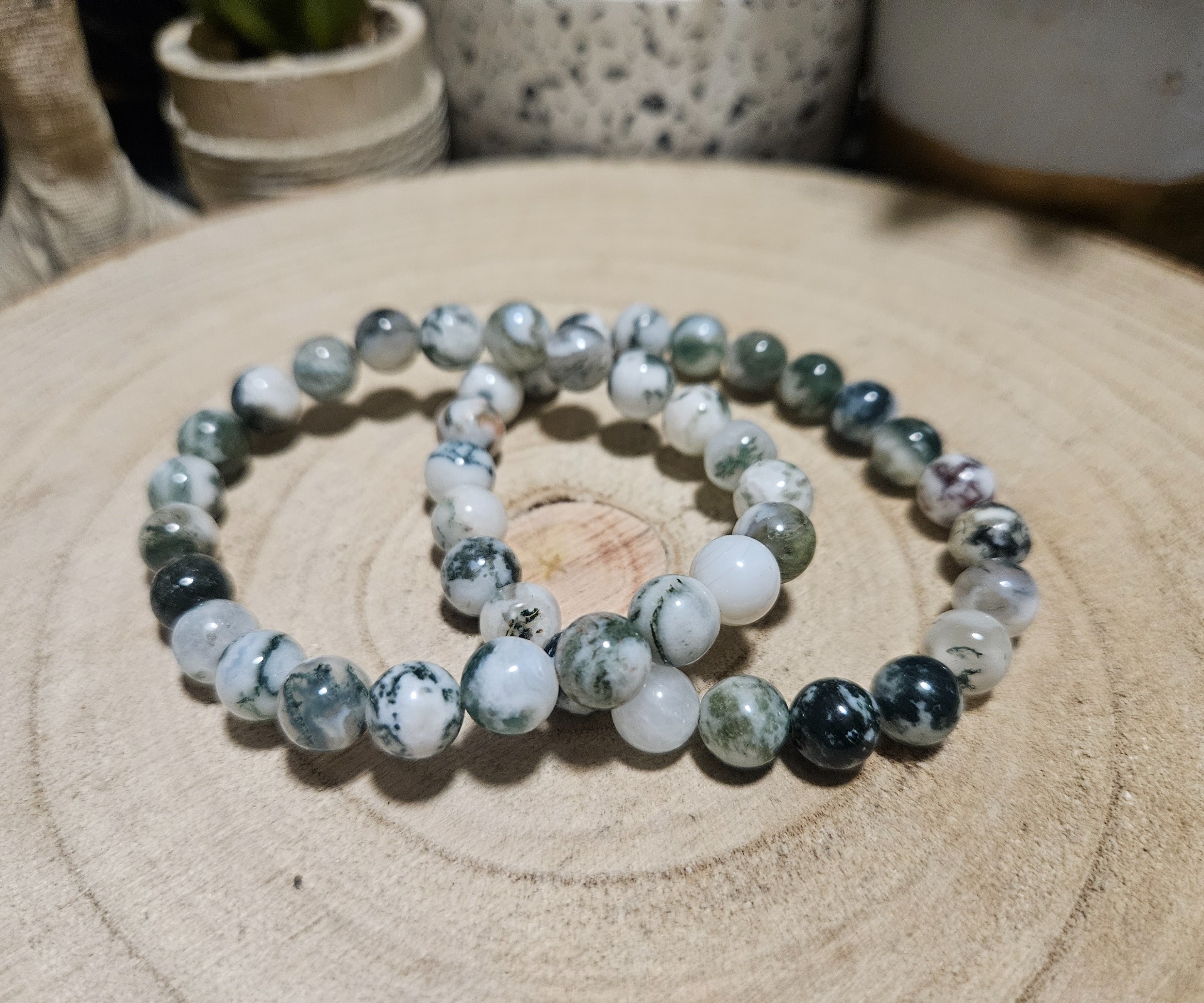Účinok stromčekového achátu je stabilita, vnútorný pokoj, vytrvalosť a posilnenie spojenia s prírodou a Matkou Zemou, podpora duchovného rozvoja, hojenie emocionálnych rán a posilnenie imunitného systému. Posilňuje sebavedomie, zmysel pre realitu a logické myslenie, pomáha začať odznova a prekonávať ťažké situácie.